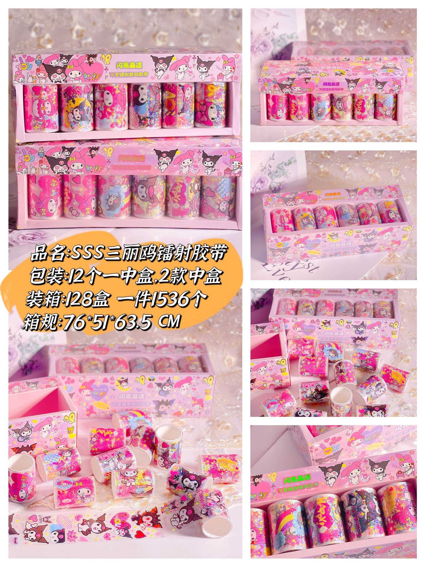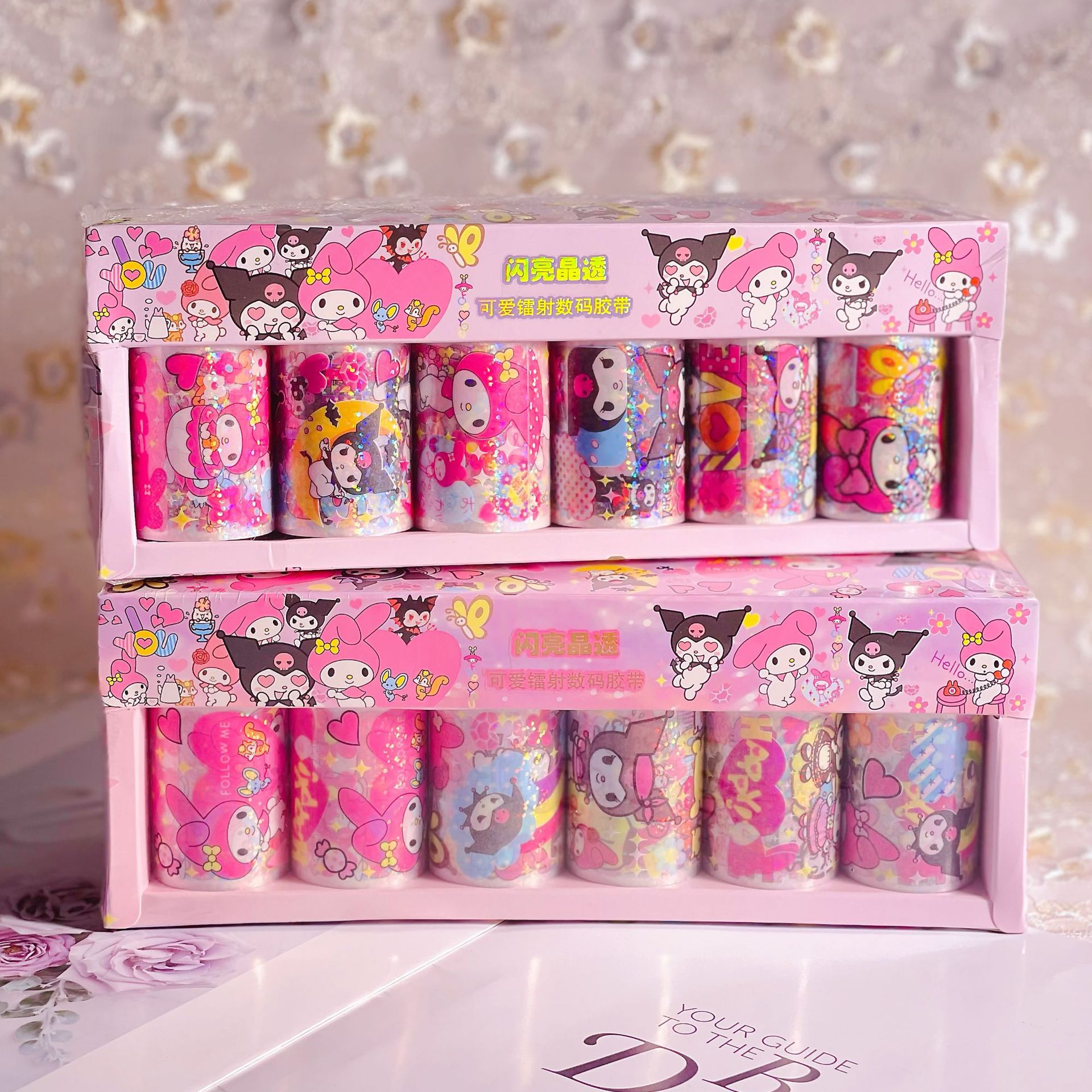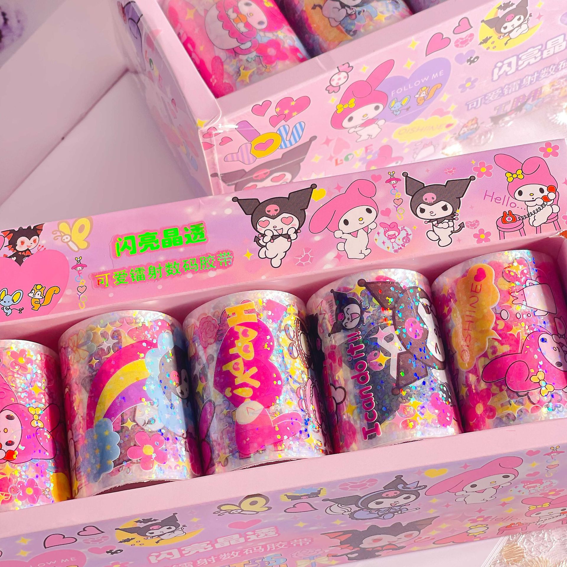 Sanrio sss 새로운 스티커 레이저 도금 투명 테이프 goo 카드 손 계정 테이프 롤 스티커 DIY 스티커스토어 가기