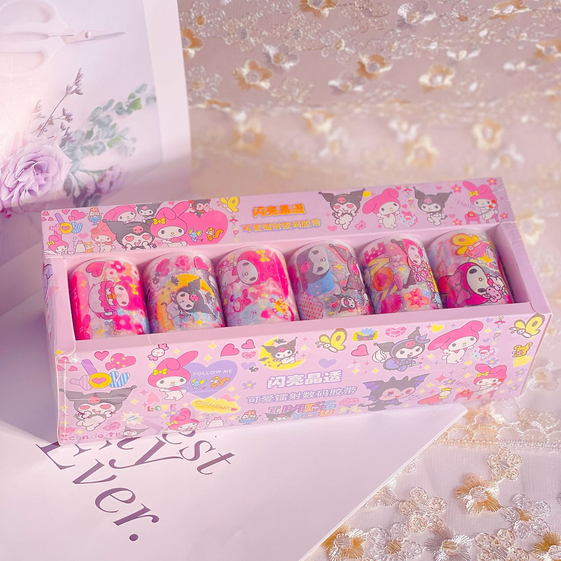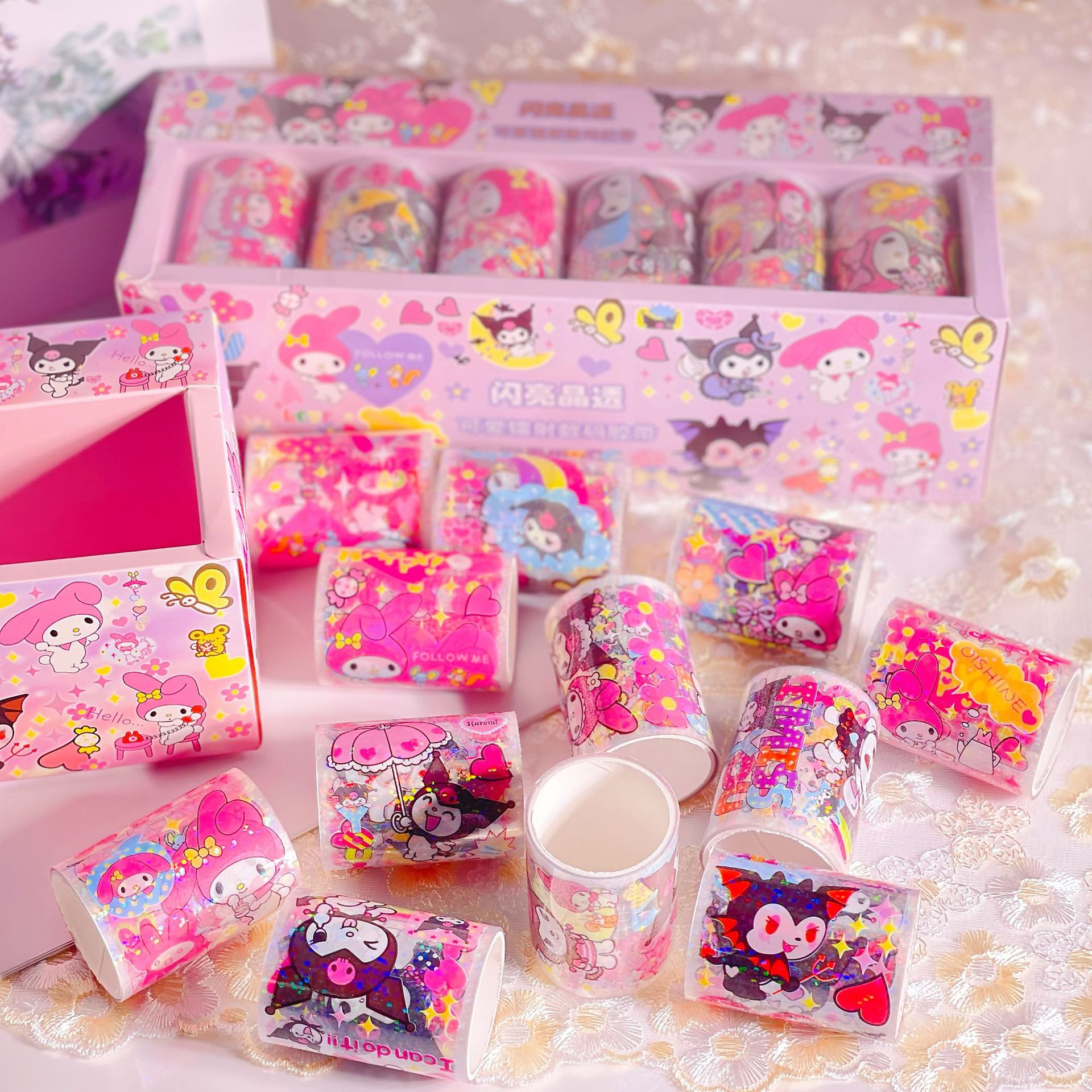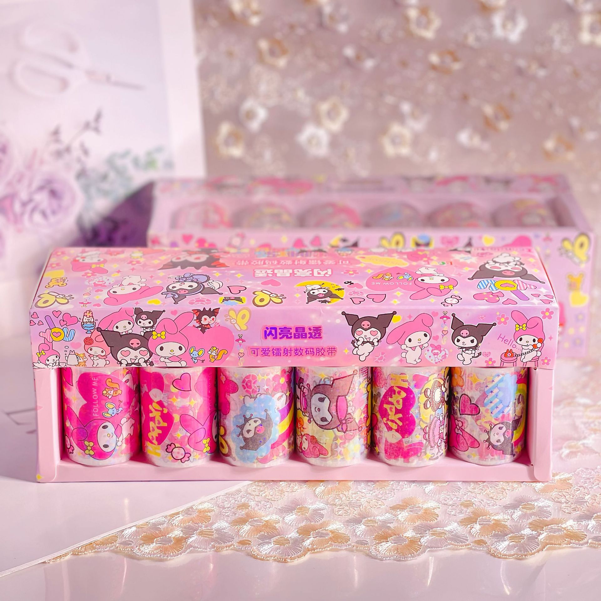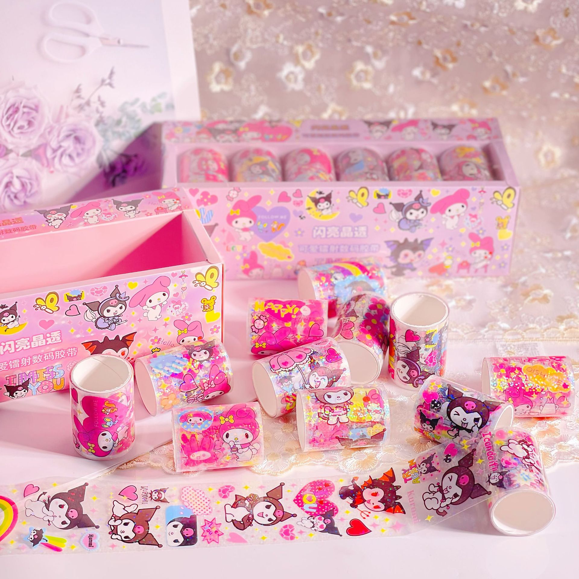 Sanrio sss 새로운 스티커 레이저 도금 투명 테이프 goo 카드 손 계정 테이프 롤 스티커 DIY 스티커