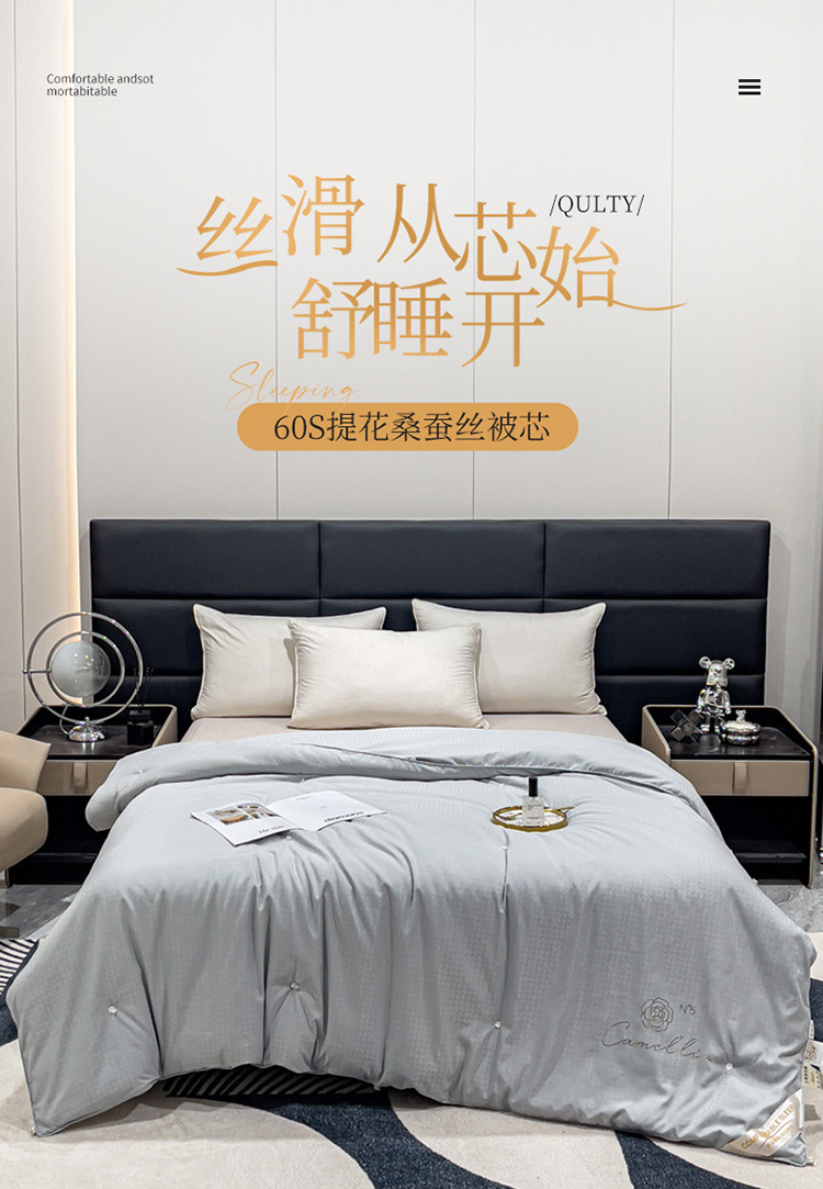 라이트 럭셔리 동백 실크 이불 수제 주문 플라워 자카드 가을과 겨울 이불 투인원 포시즌 더블 이불 도매
