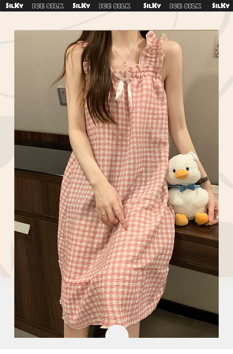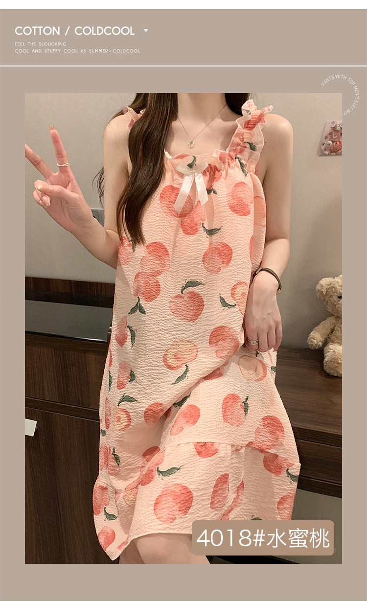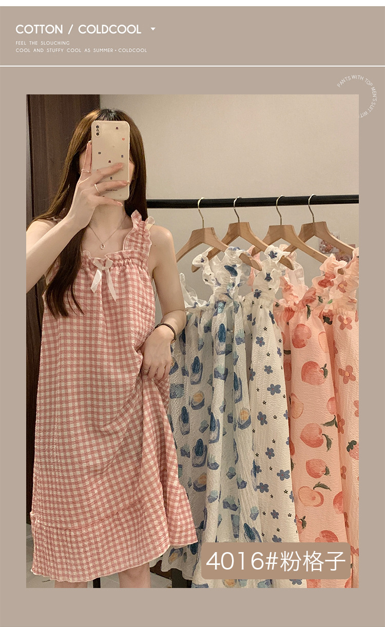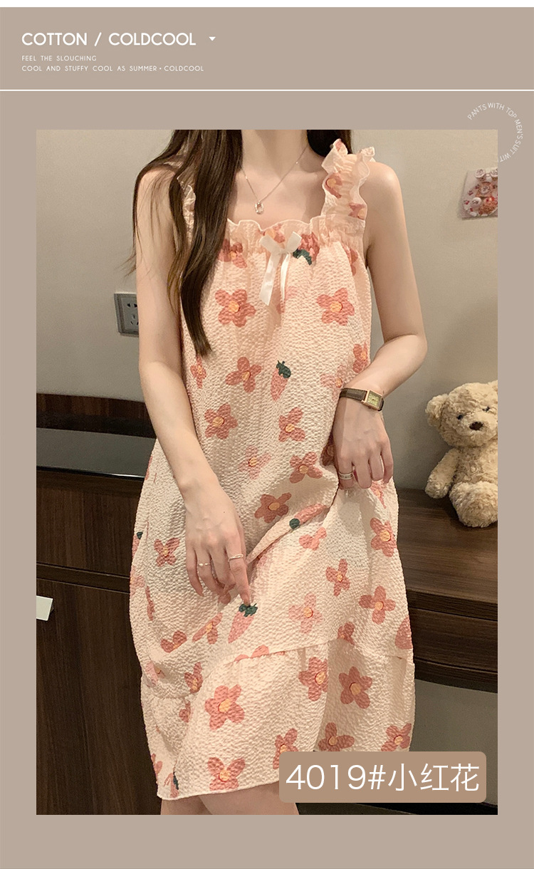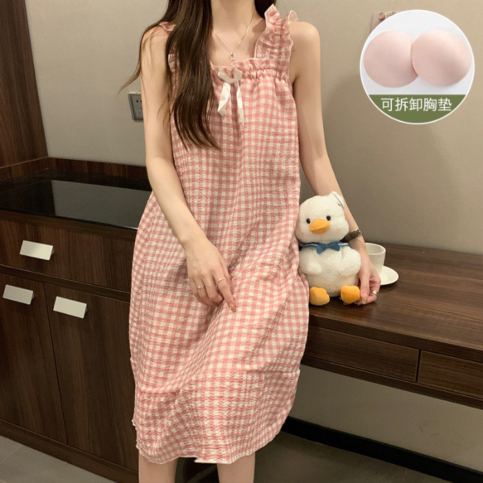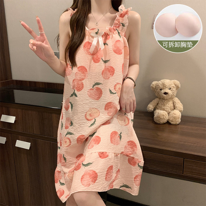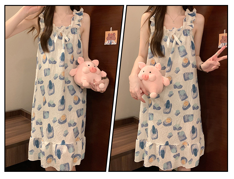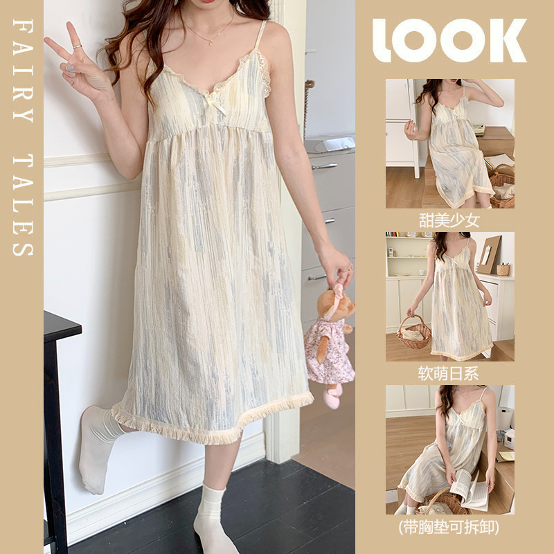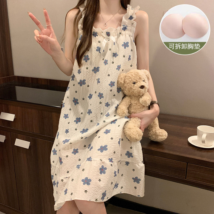 크로스 보더 잠옷 여성용 여름 Sweet in 스타일 버블 코튼 얇은 스타일 가슴 패드 슬링 잠옷 아웃도어 웨어