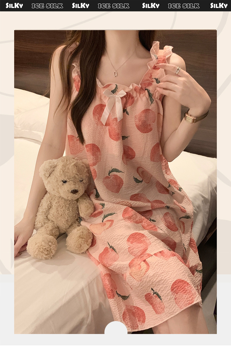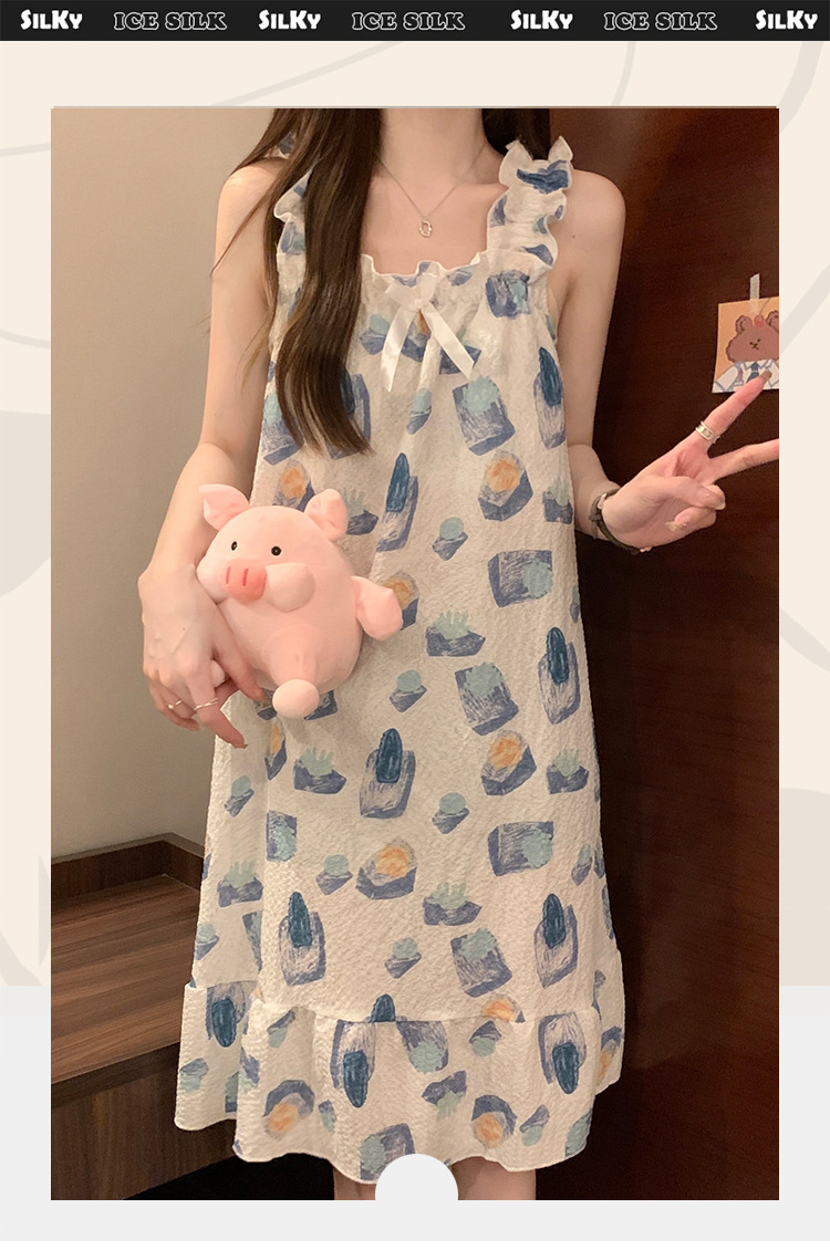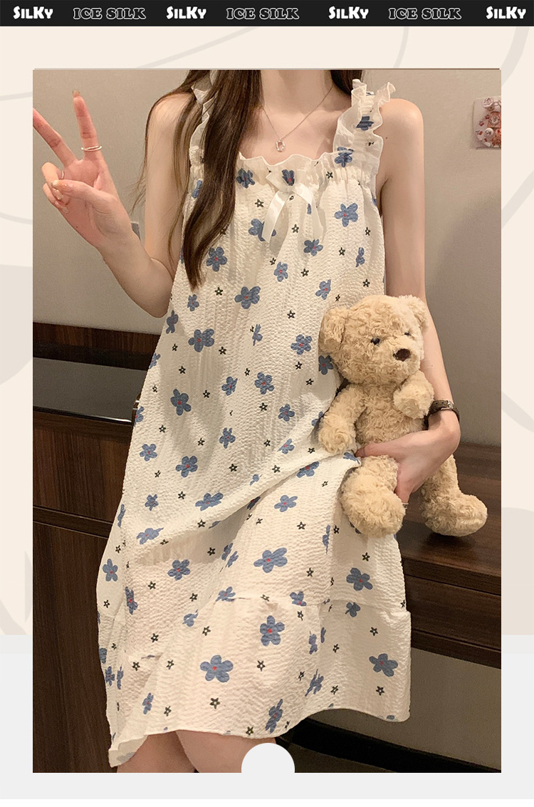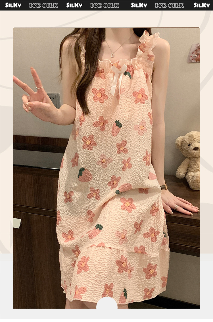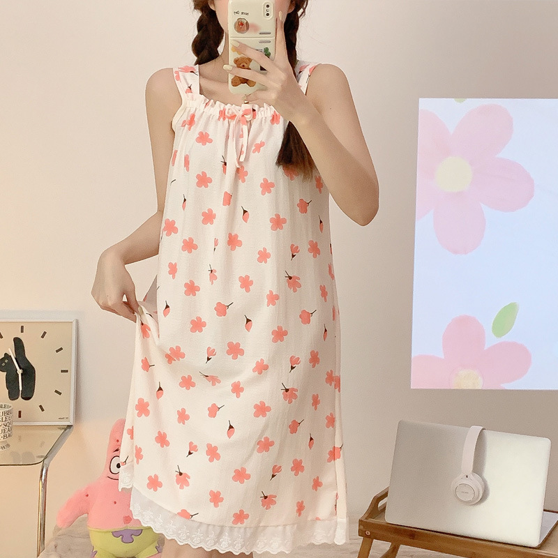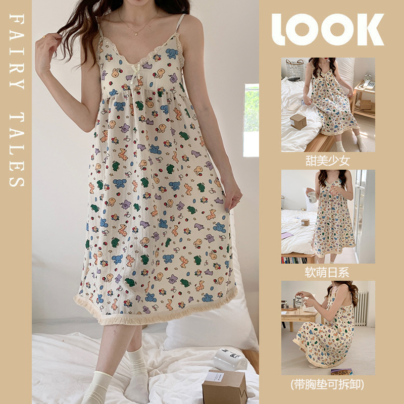 크로스 보더 잠옷 여성용 여름 Sweet in 스타일 버블 코튼 얇은 스타일 가슴 패드 슬링 잠옷 아웃도어 웨어스토어 가기