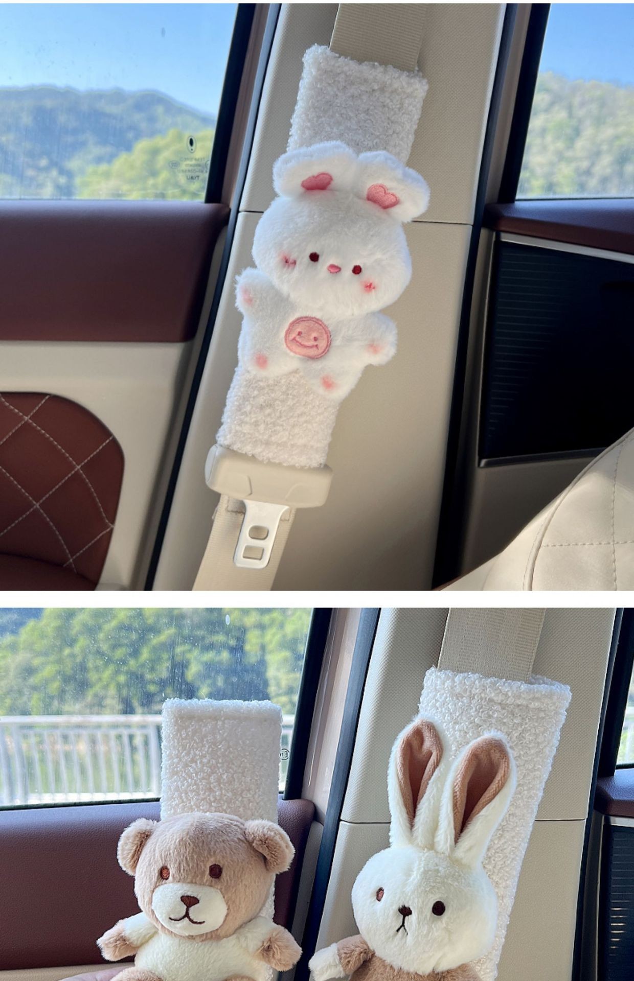 카시트 벨트 어깨 커버 여성용 귀여운 봉제 인형 토끼 곰 안전 벨트 보호 커버 자동차 액세서리 장식