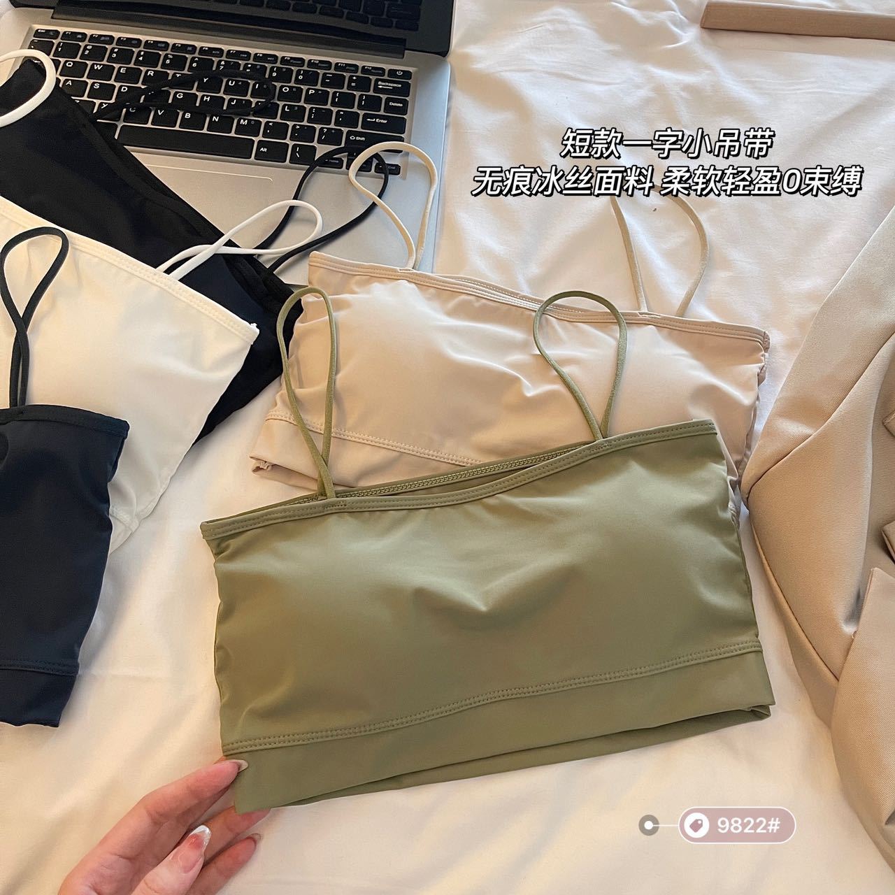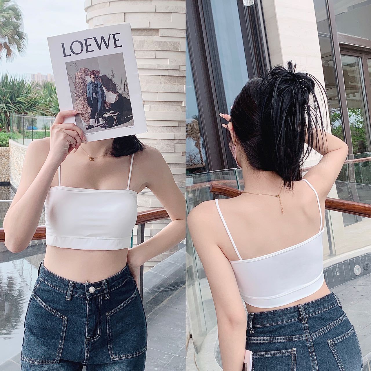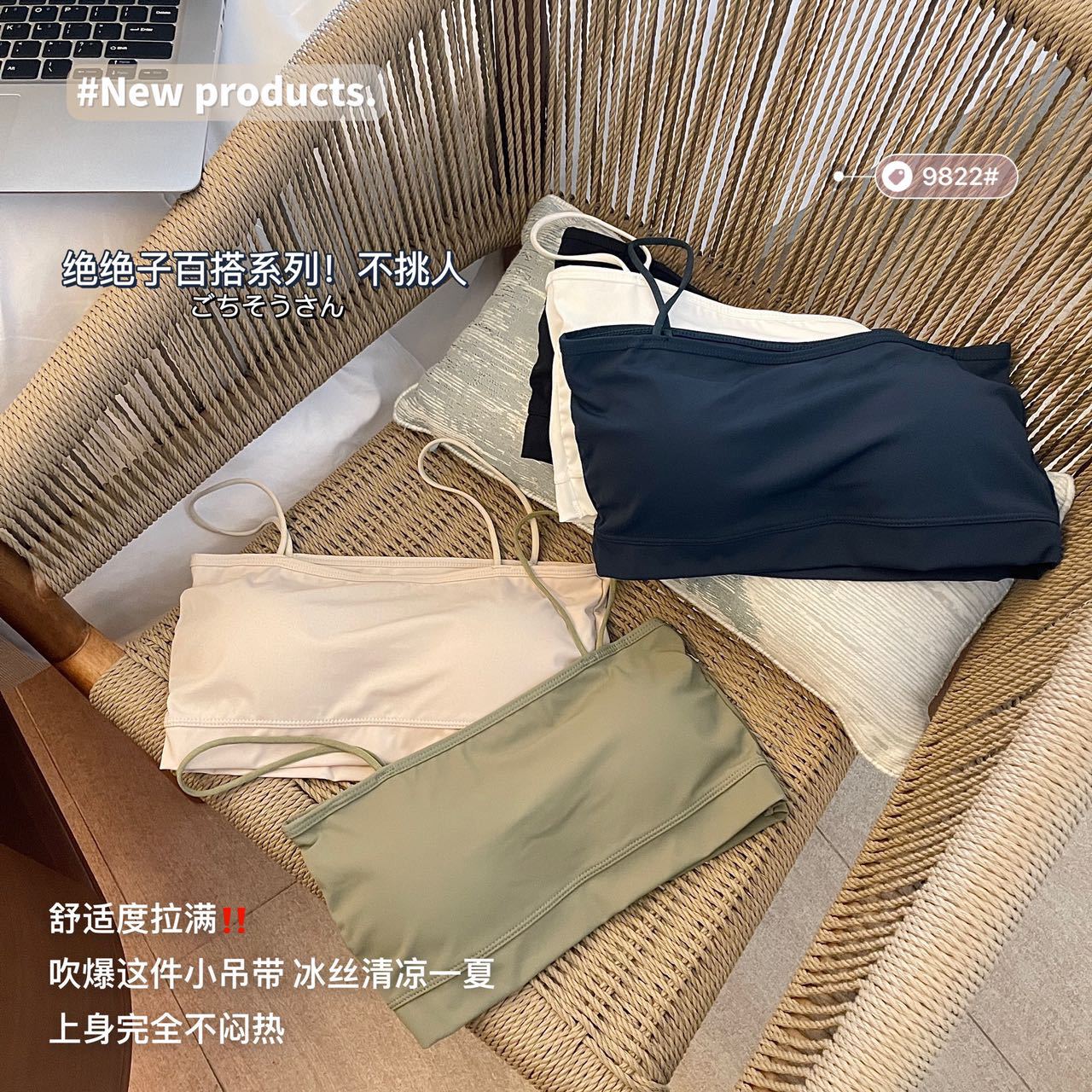 짧은 아이스 실크 캐미솔 통합 고정 컵 아름다운 백 튜브 탑 안티 라이트 통기성 여름 얇은 내부 랩스토어 가기