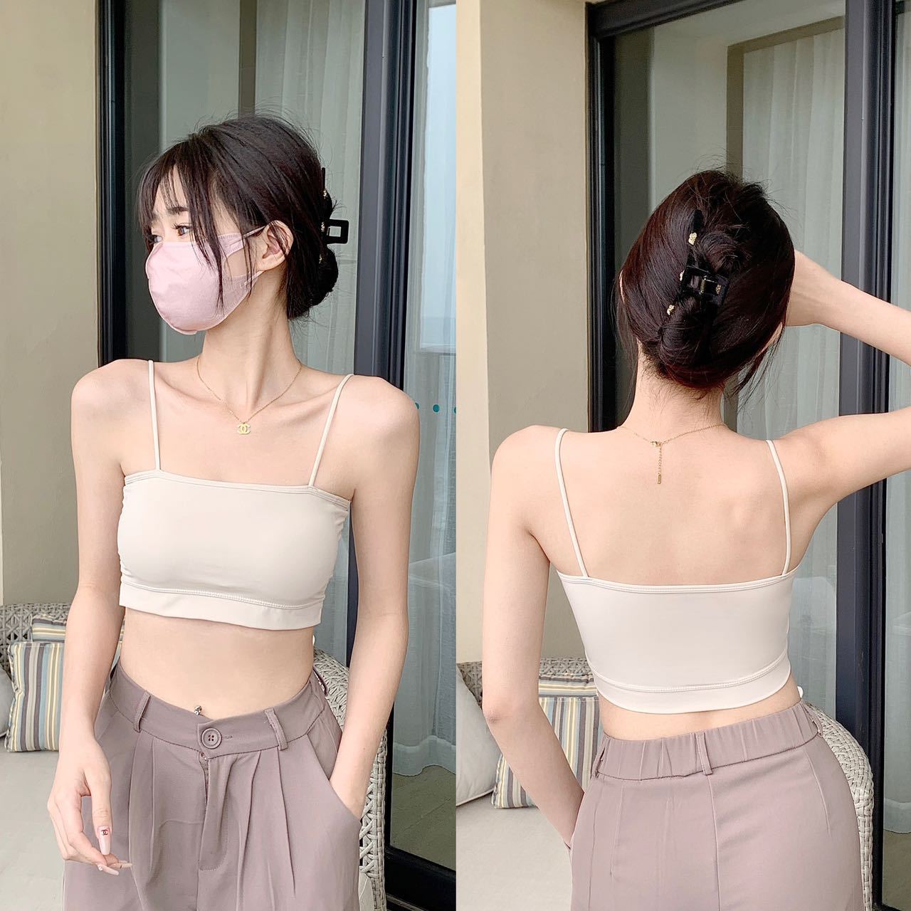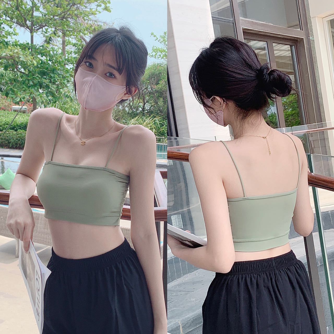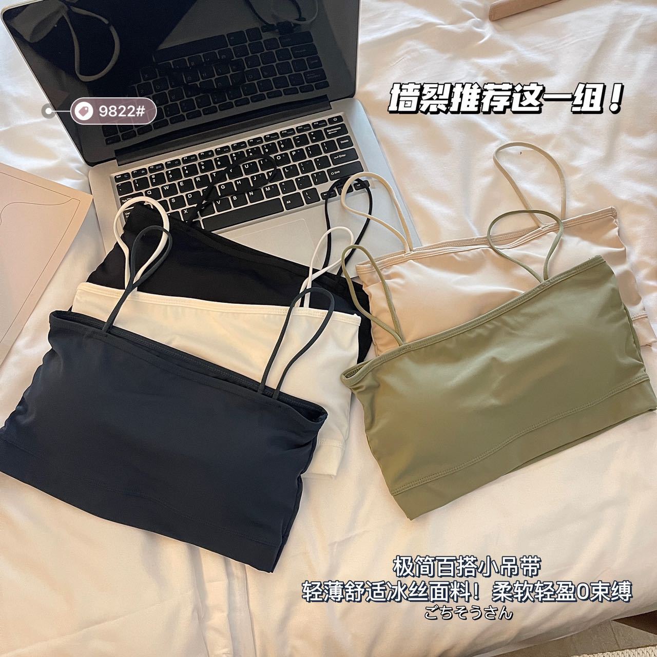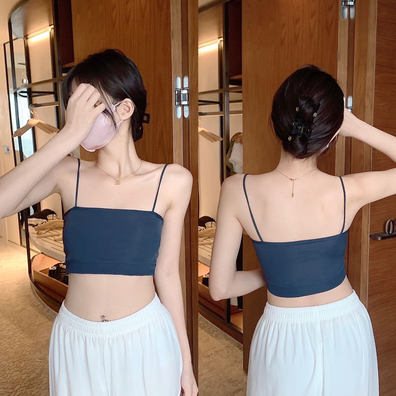 짧은 아이스 실크 캐미솔 통합 고정 컵 아름다운 백 튜브 탑 안티 라이트 통기성 여름 얇은 내부 랩스토어 가기