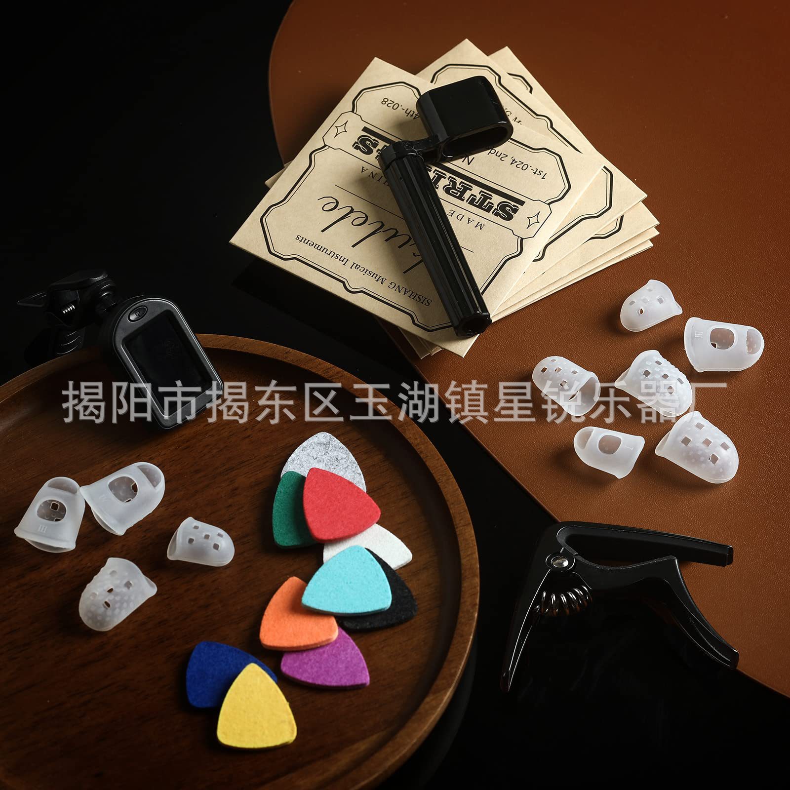 • UK 현 5세트 + 펠트 픽 10개 + 핑거 콧츠 10개 + 튜너 + 금속 다크 우드 그레인 클립 + 튜너