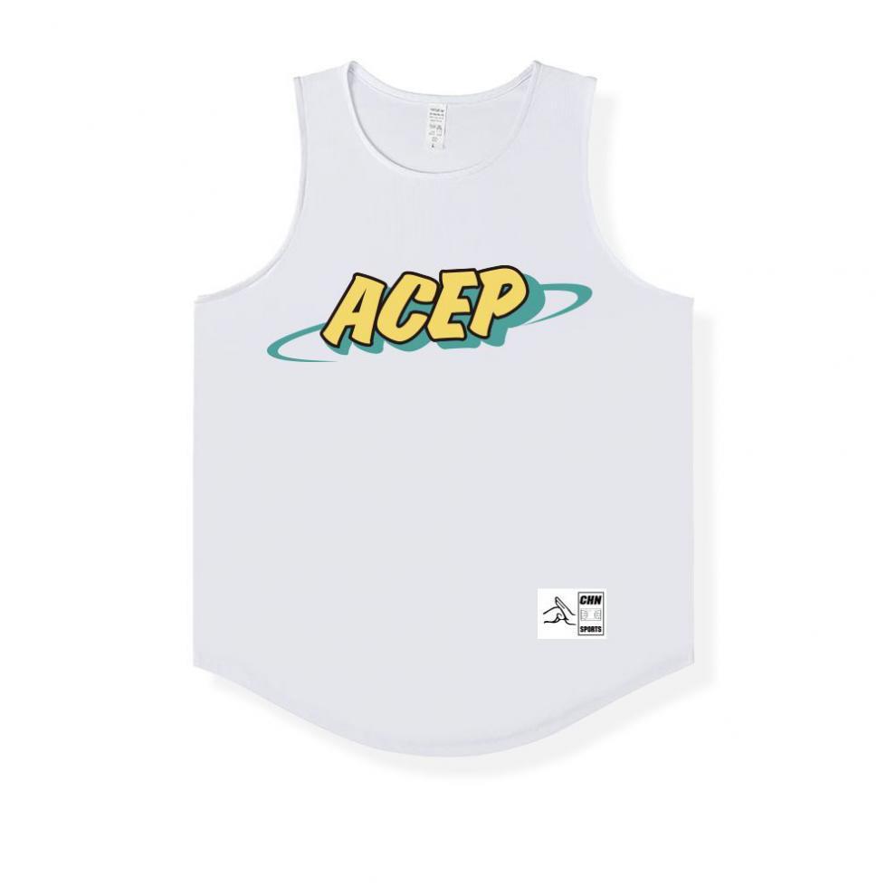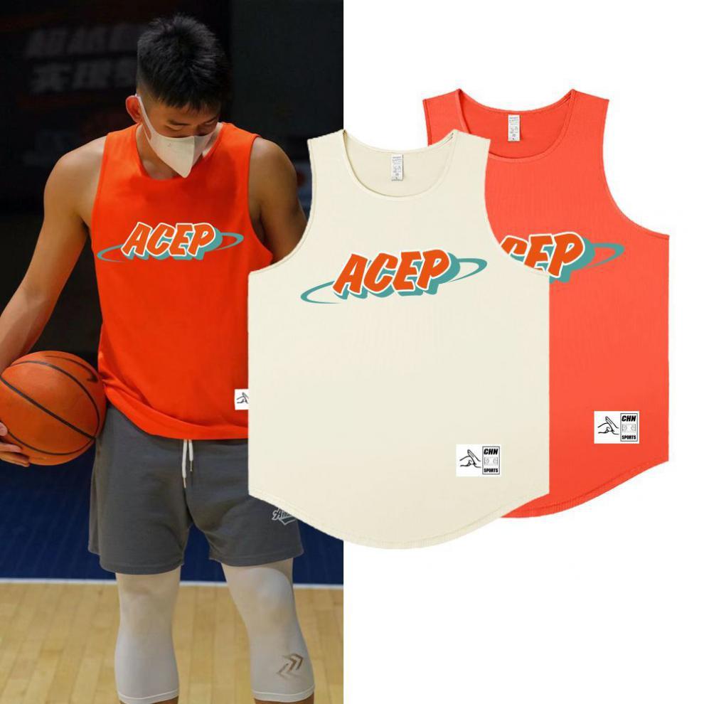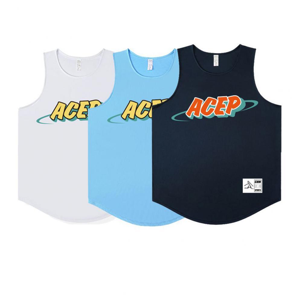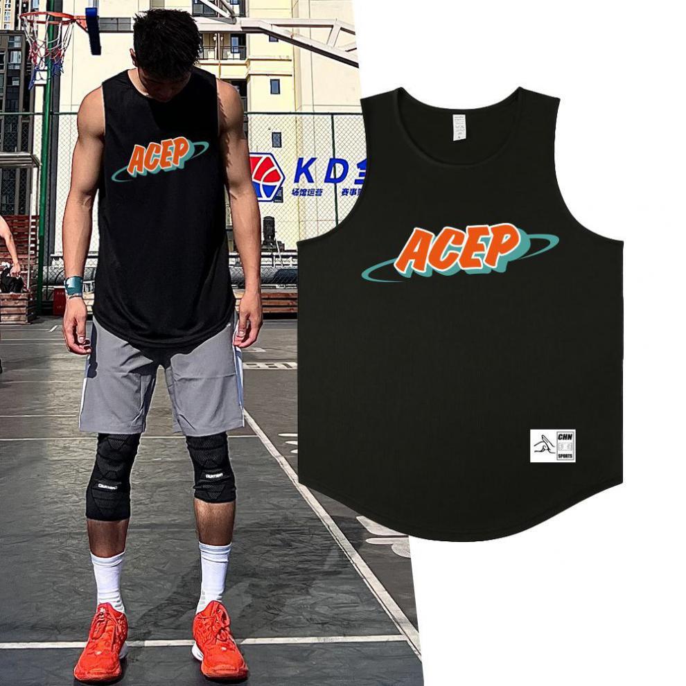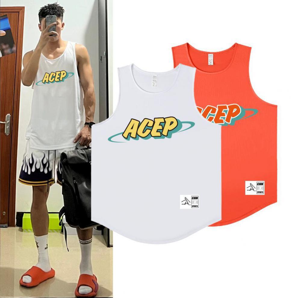 미국식 실용 조끼 남성용 속건 느슨한 ACEP 스트리트 볼 통기성 스포츠 땀 흡수 좁은 어깨 피트니스 조끼 티셔츠 트렌디