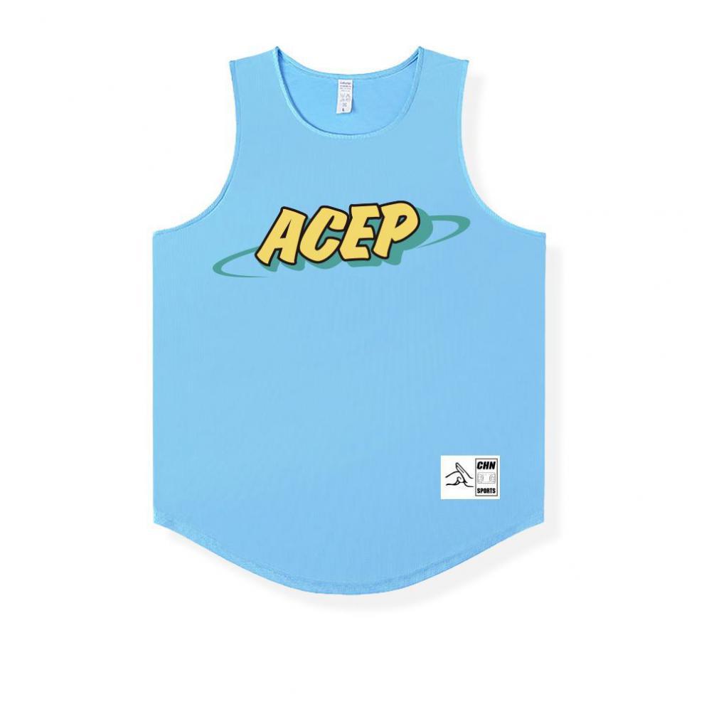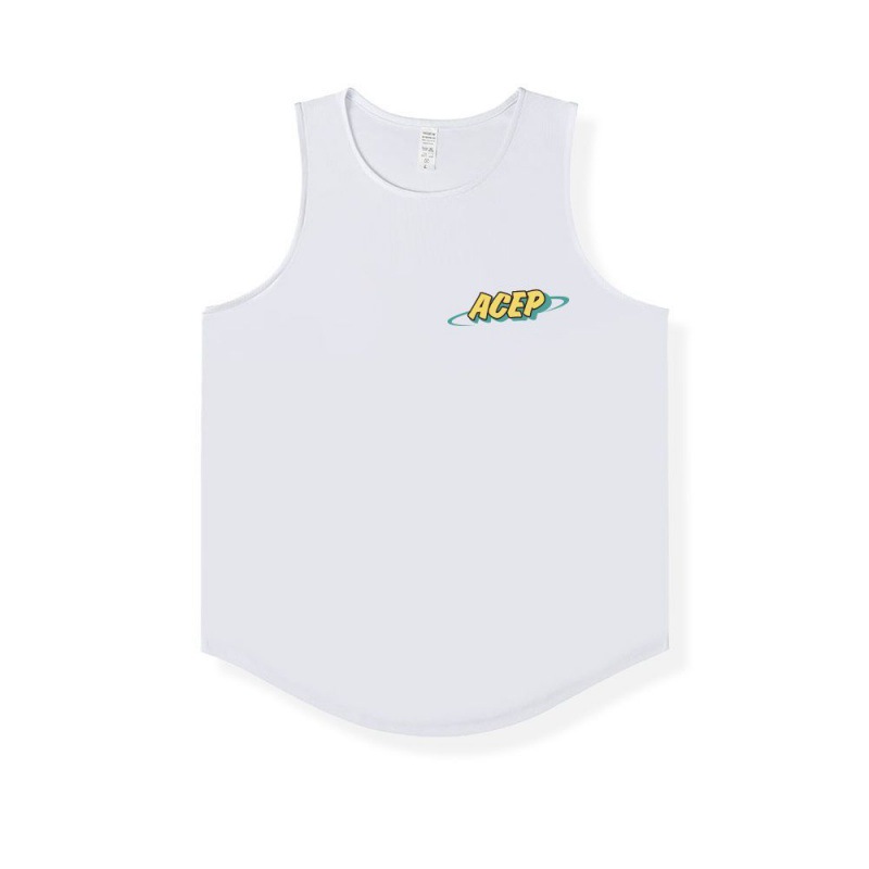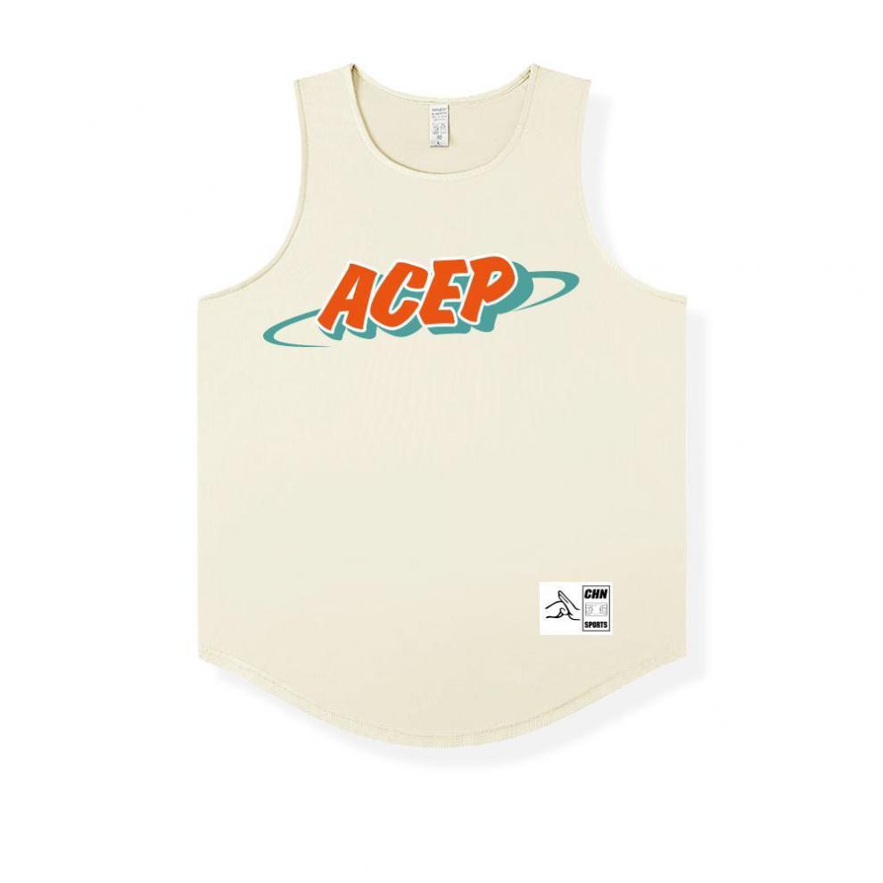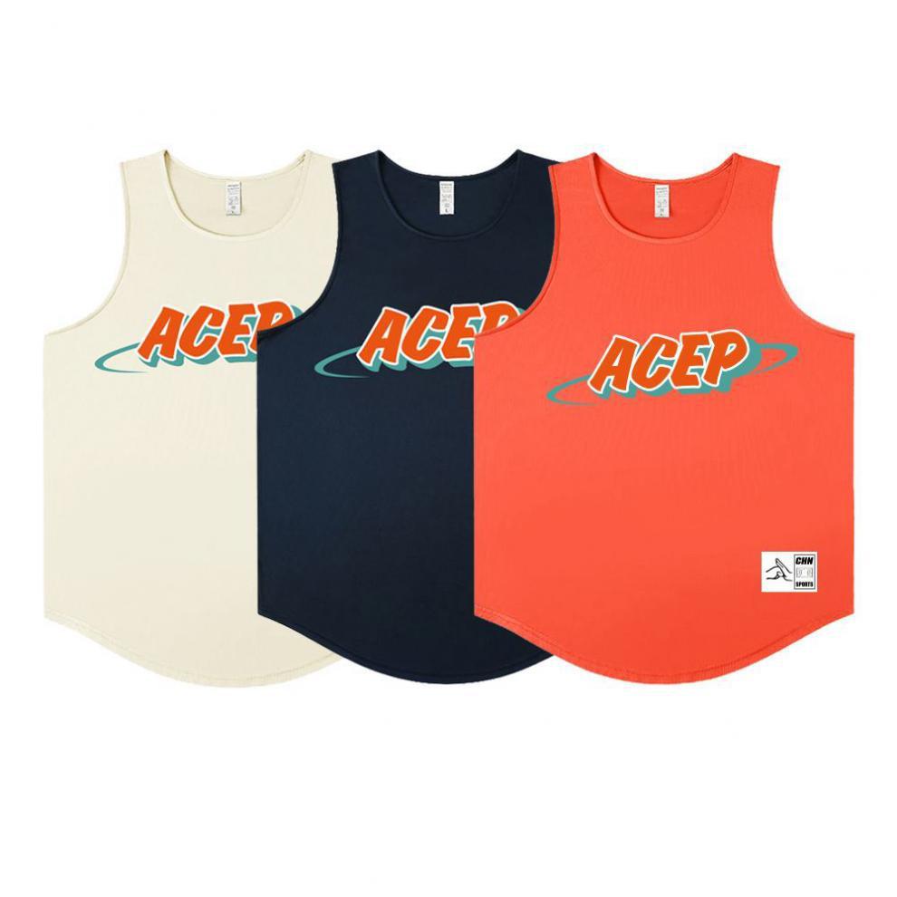미국식 실용 조끼 남성용 속건 느슨한 ACEP 스트리트 볼 통기성 스포츠 땀 흡수 좁은 어깨 피트니스 조끼 티셔츠 트렌디