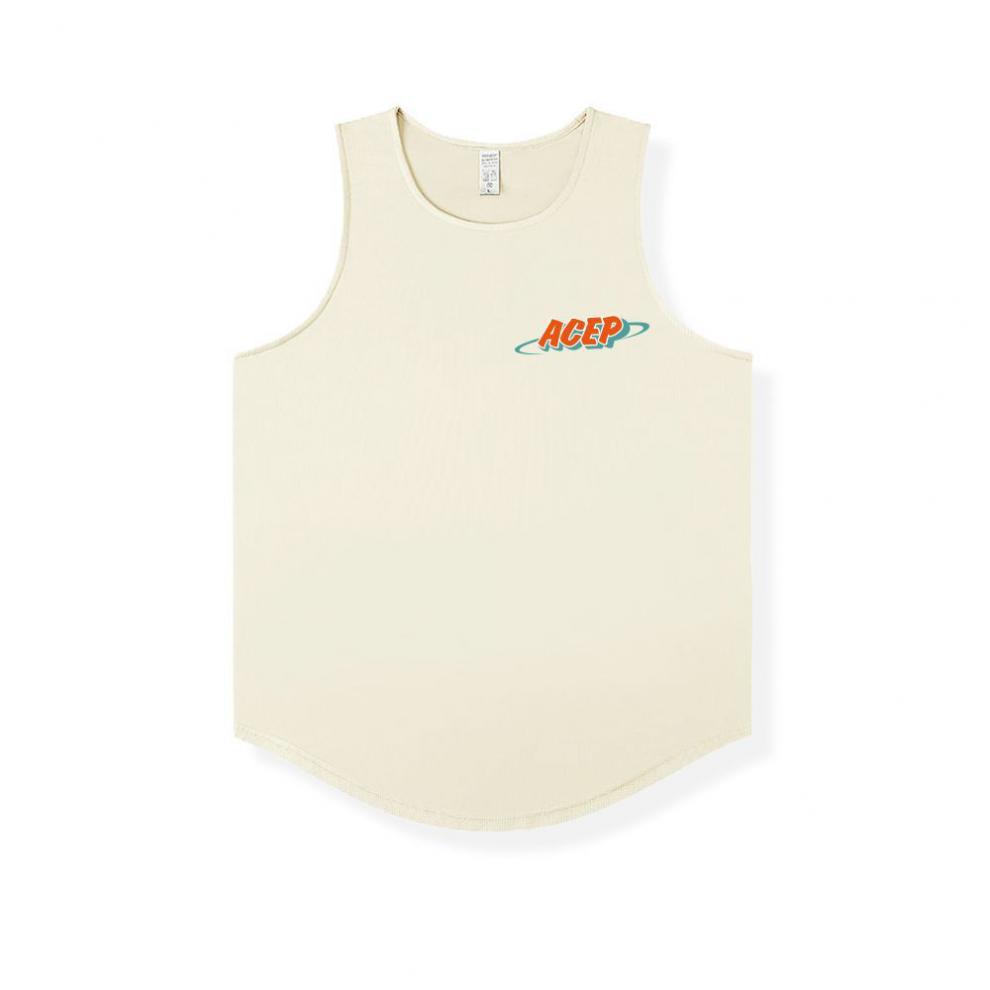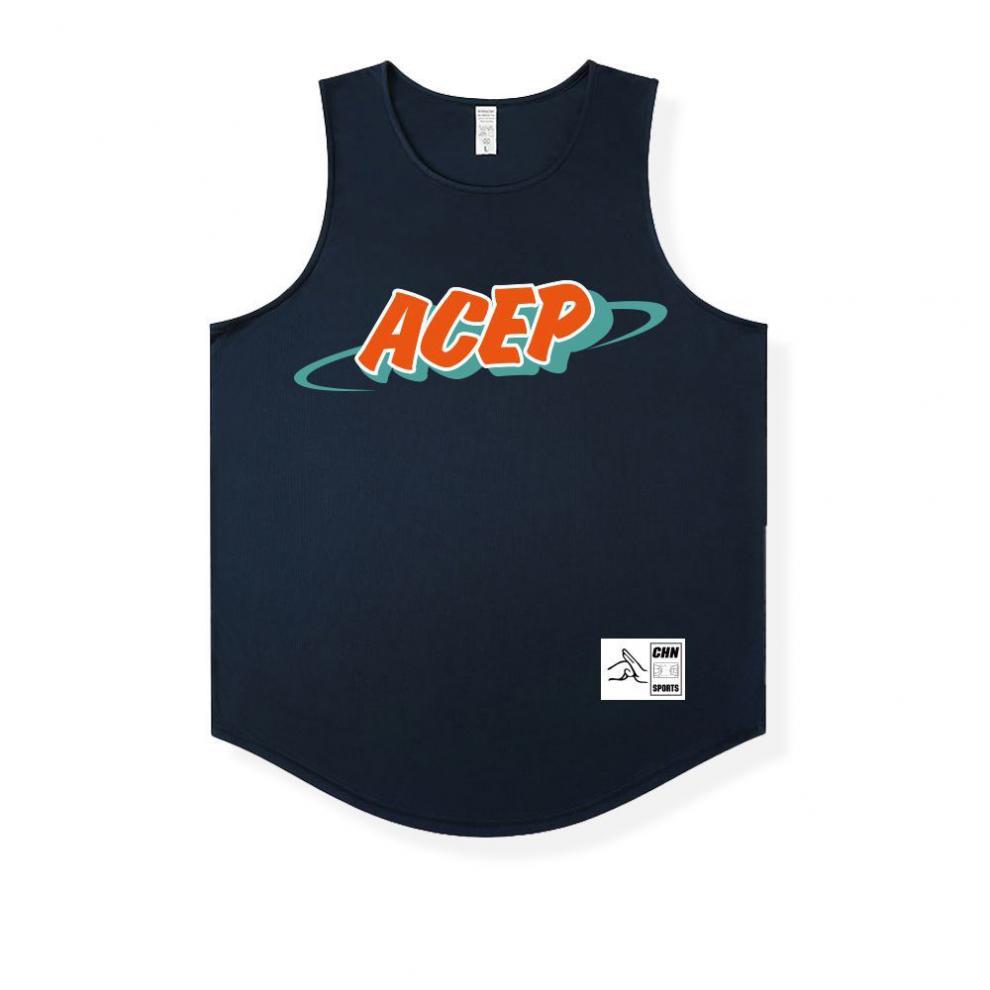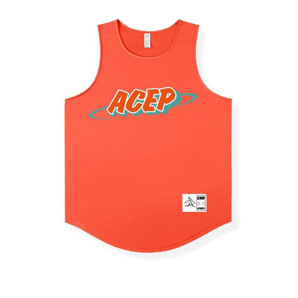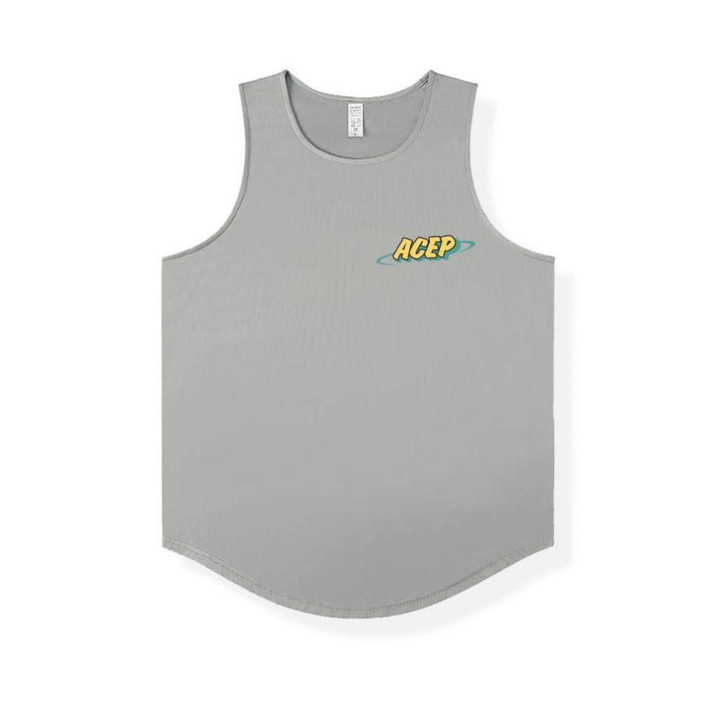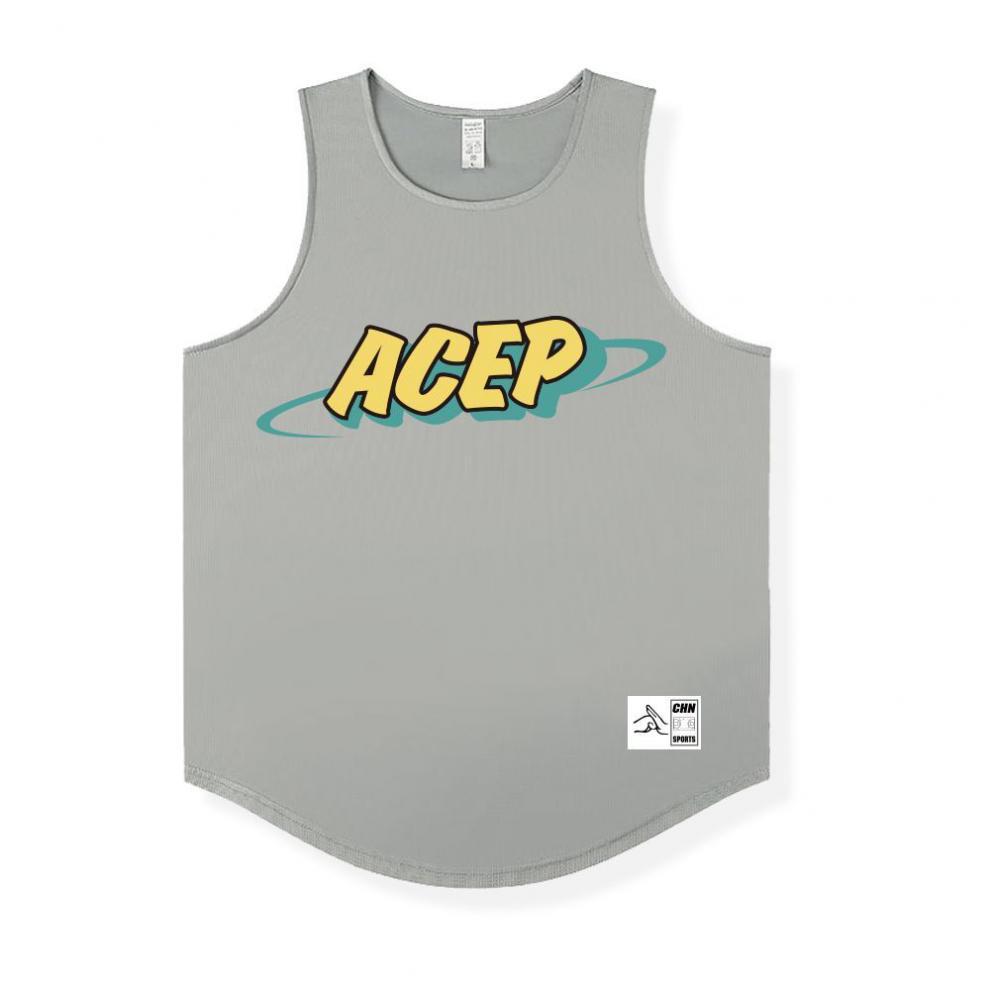 미국식 실용 조끼 남성용 속건 느슨한 ACEP 스트리트 볼 통기성 스포츠 땀 흡수 좁은 어깨 피트니스 조끼 티셔츠 트렌디