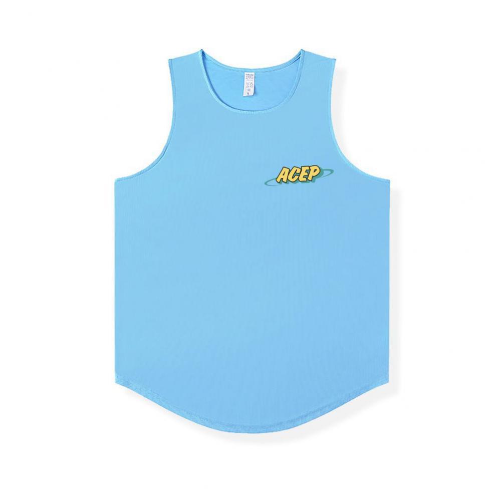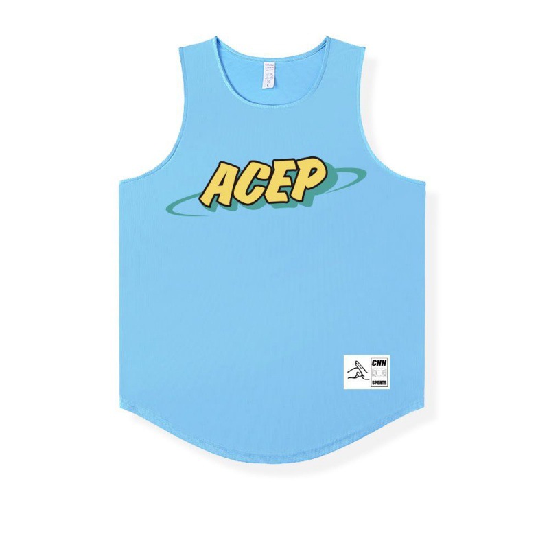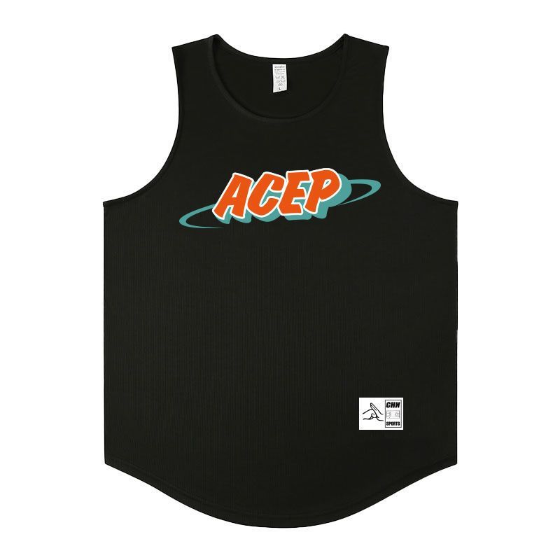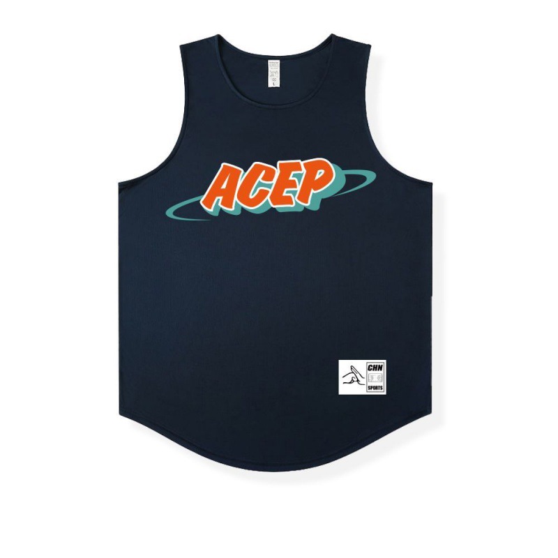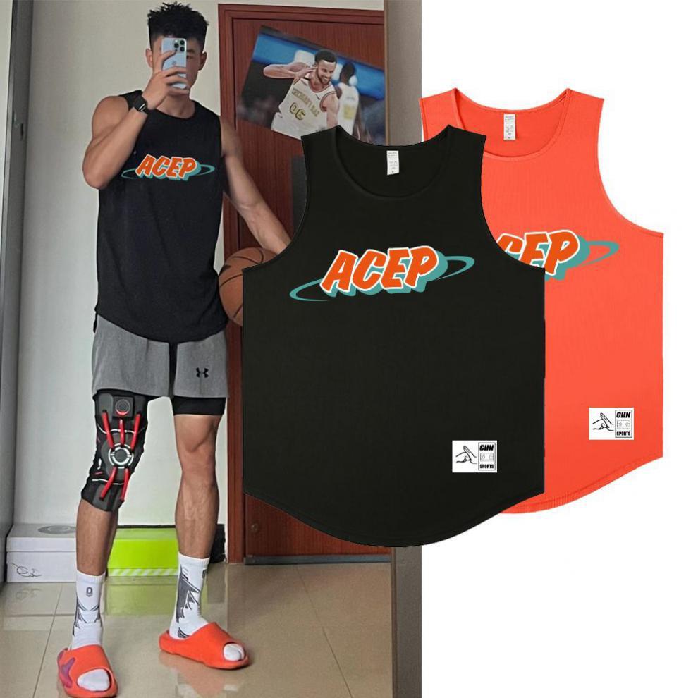 미국식 실용 조끼 남성용 속건 느슨한 ACEP 스트리트 볼 통기성 스포츠 땀 흡수 좁은 어깨 피트니스 조끼 티셔츠 트렌디스토어 가기