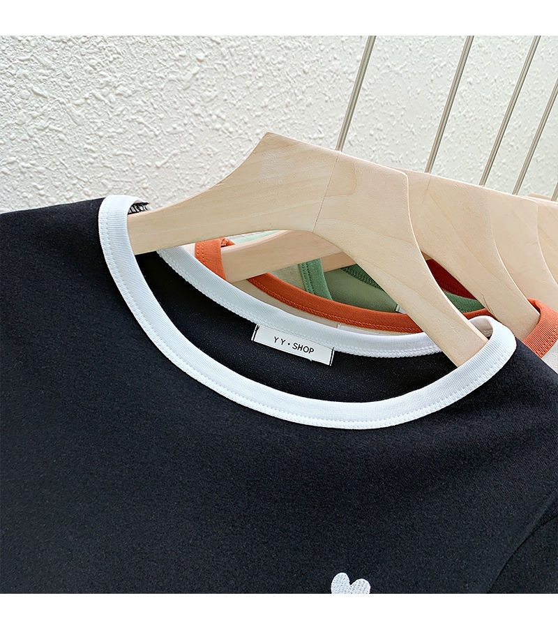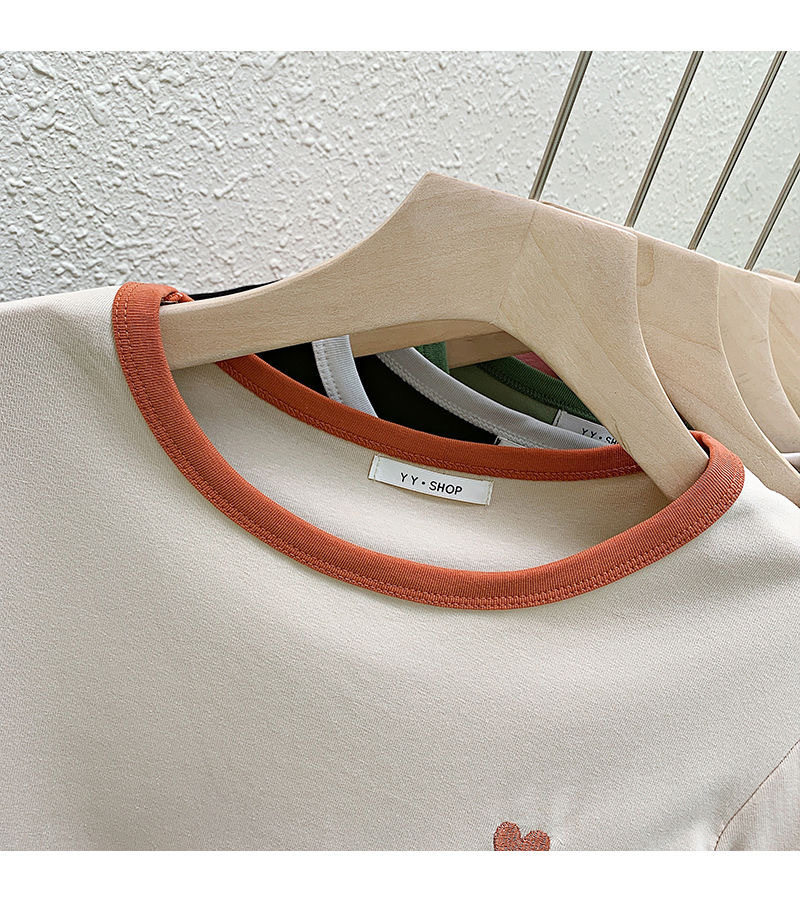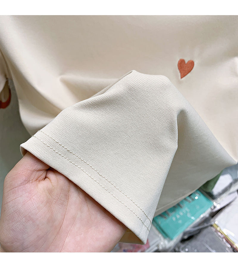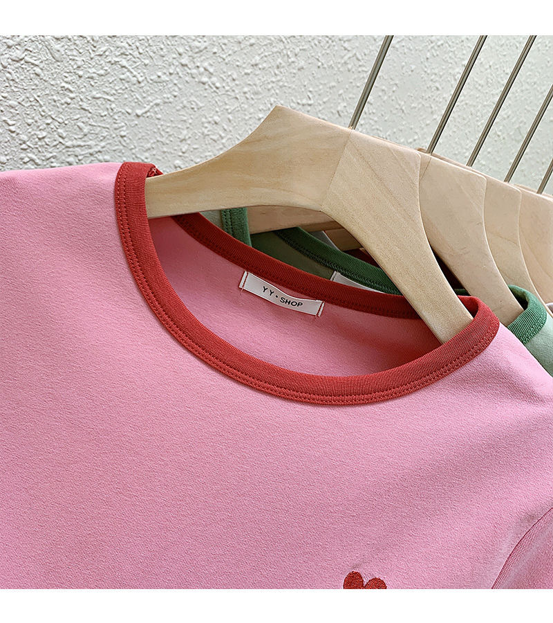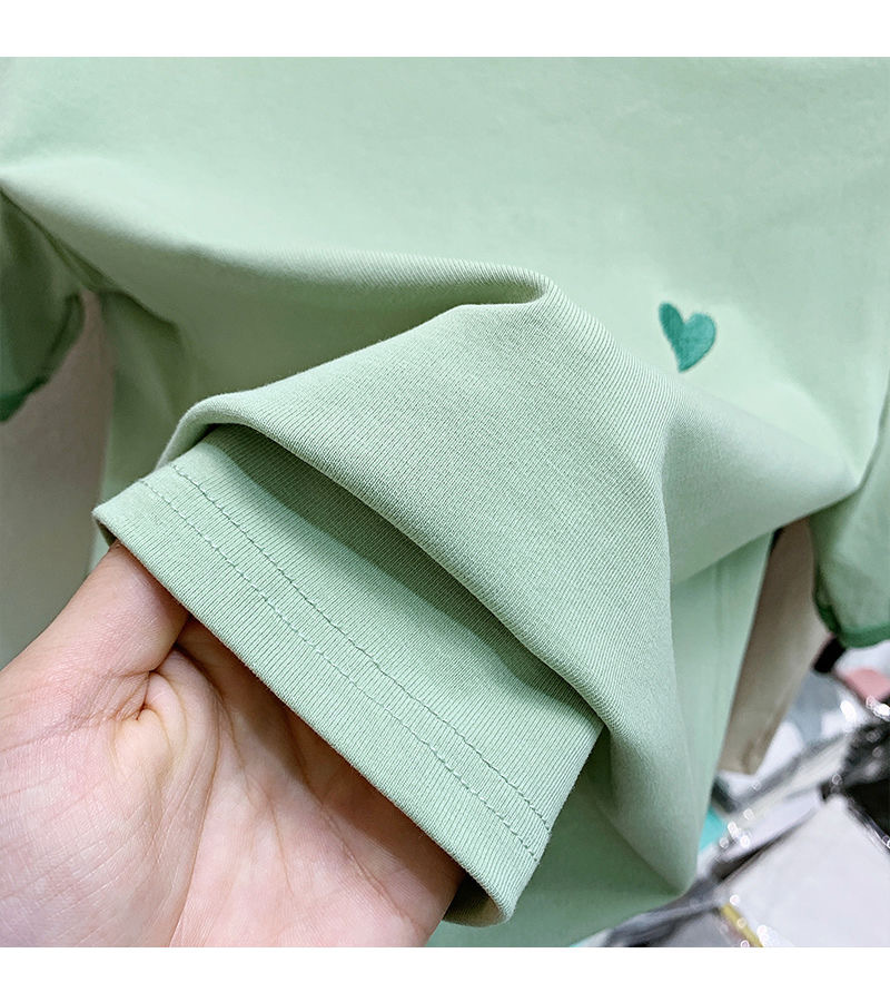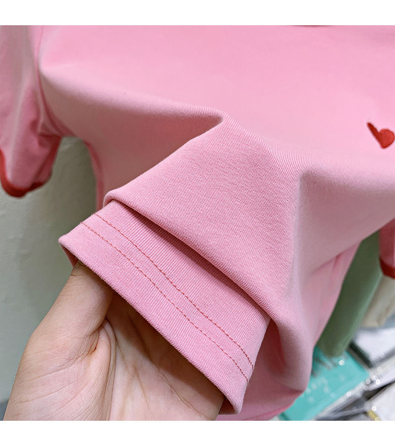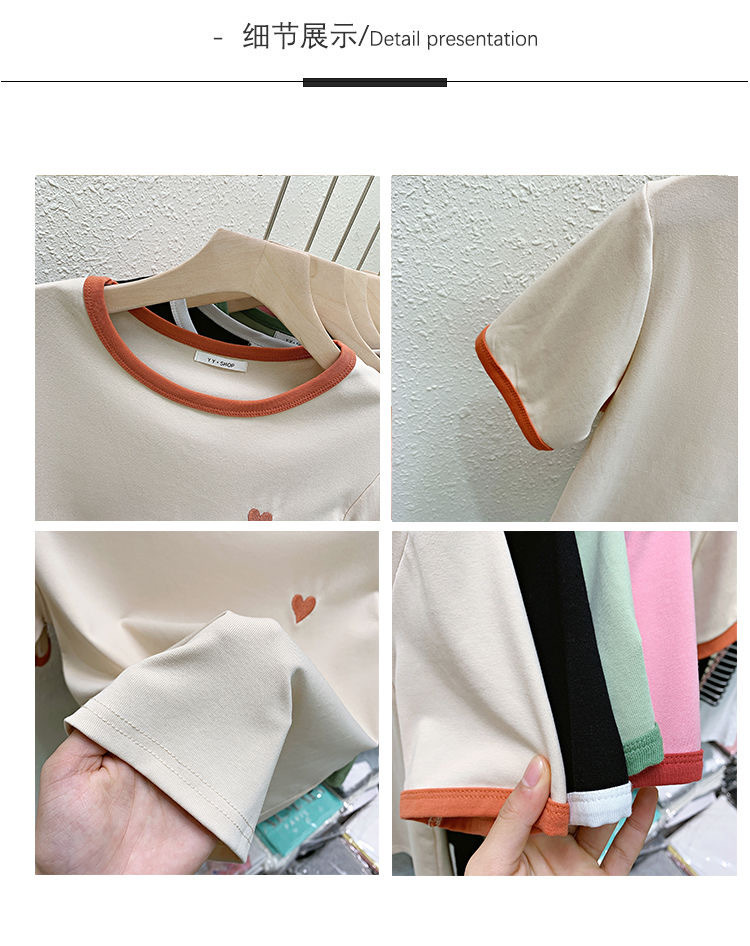 여아 자수 하트 티셔츠 2026 여름 신상 중대형 아동용 반팔 상의 여아 스타일리쉬 반팔 트렌디 티셔츠