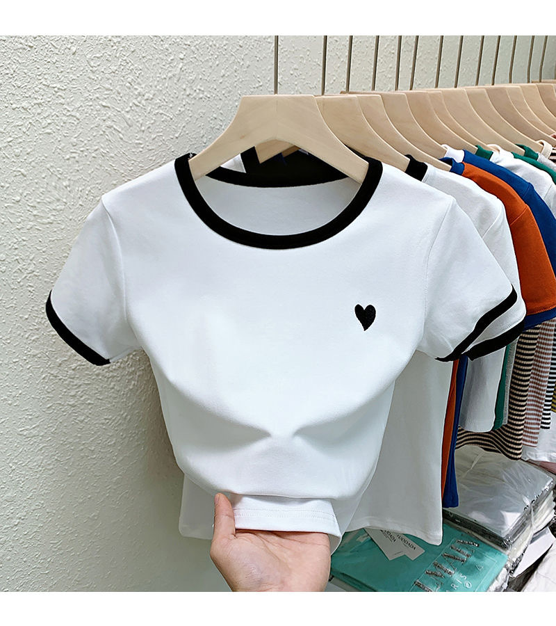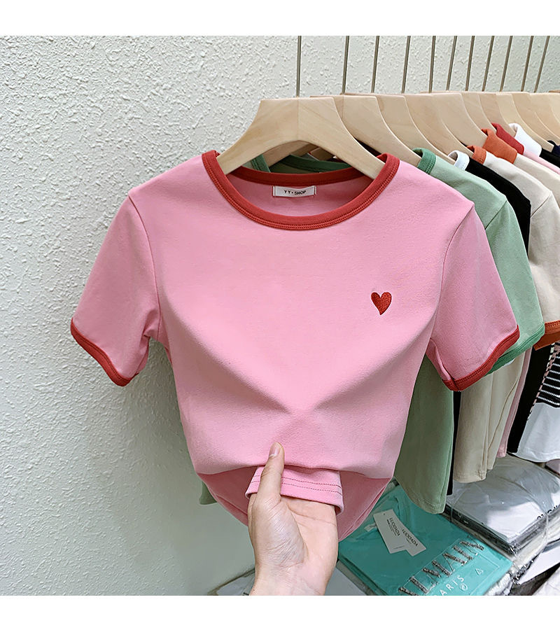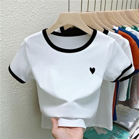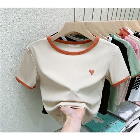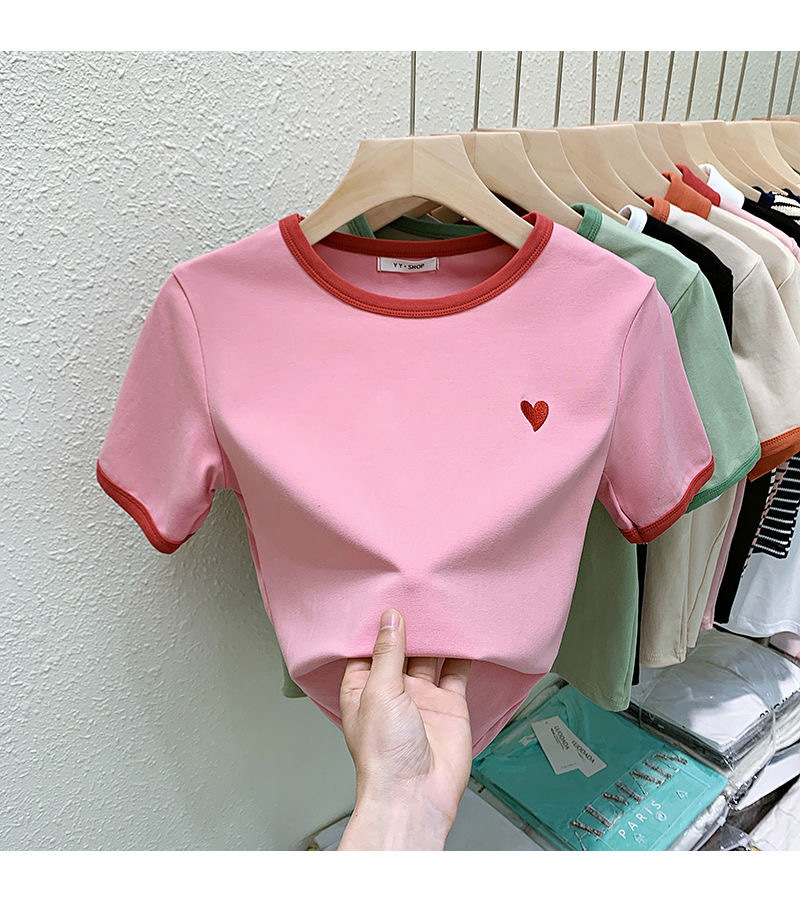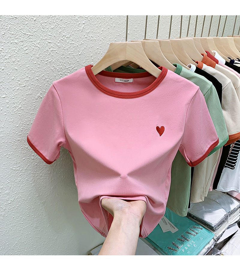 여아 자수 하트 티셔츠 2026 여름 신상 중대형 아동용 반팔 상의 여아 스타일리쉬 반팔 트렌디 티셔츠스토어 가기