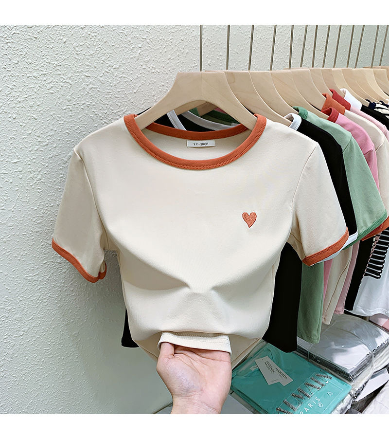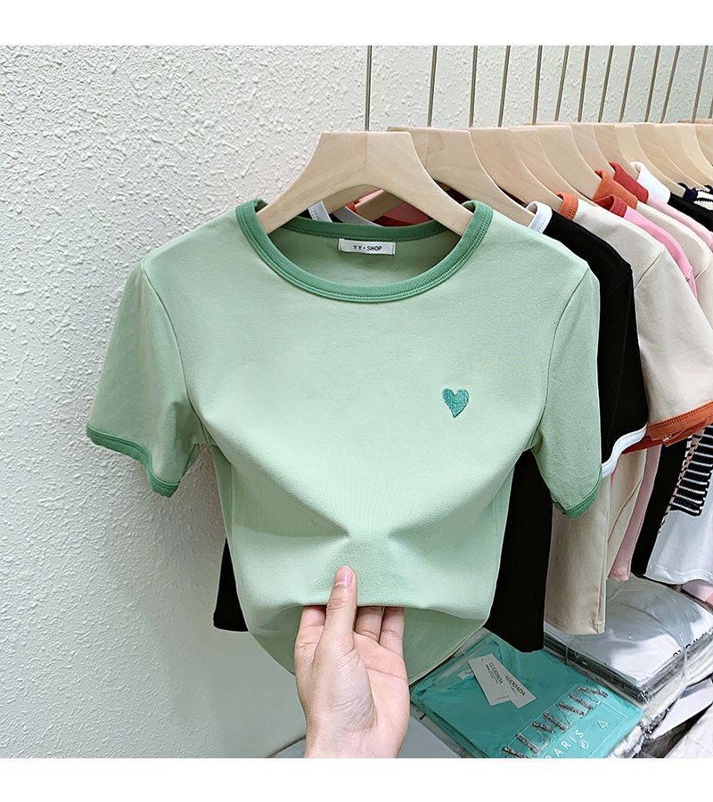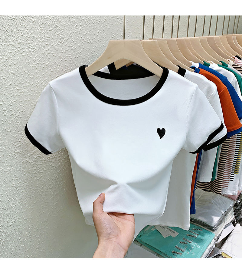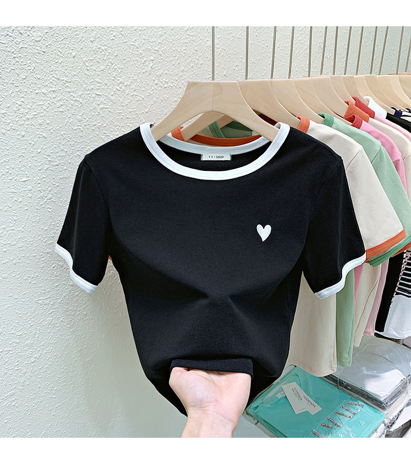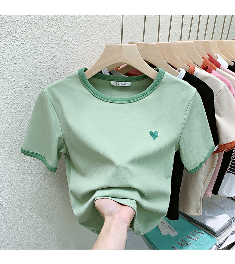 여아 자수 하트 티셔츠 2026 여름 신상 중대형 아동용 반팔 상의 여아 스타일리쉬 반팔 트렌디 티셔츠스토어 가기
