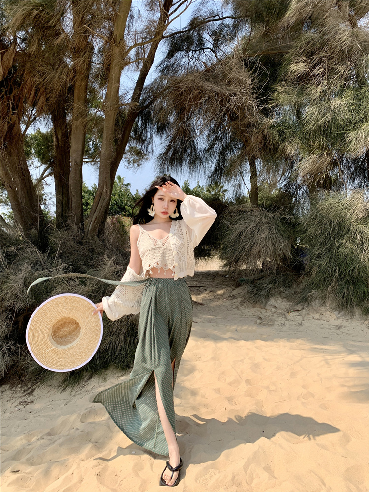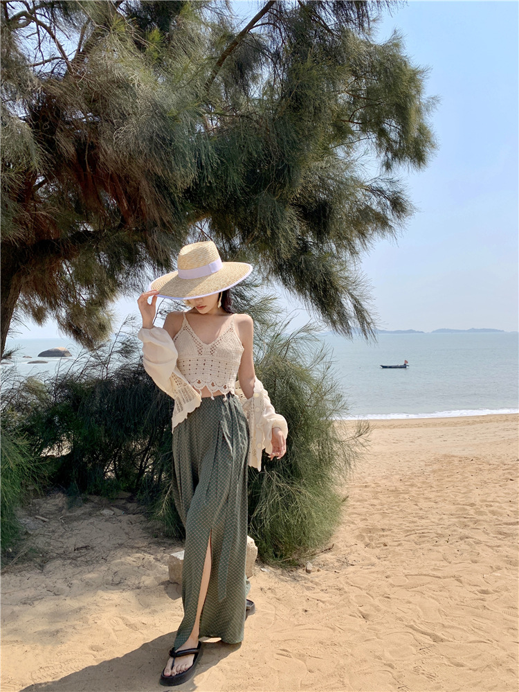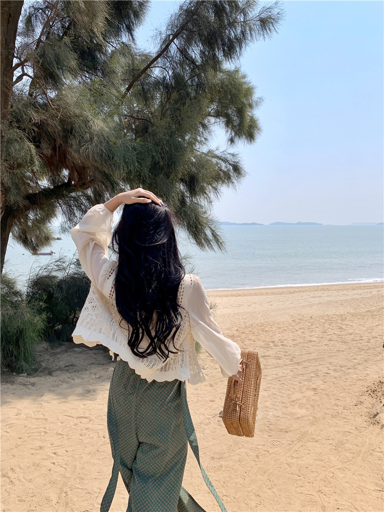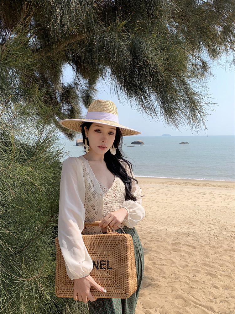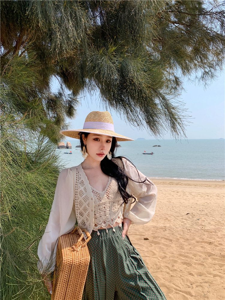 살구색 중공 크로 셰 뜨개질 외부 카디건 여자의 여름 해변 휴가 선 스크린 니트 스티치 쉬폰 슬리브 탑 재킷