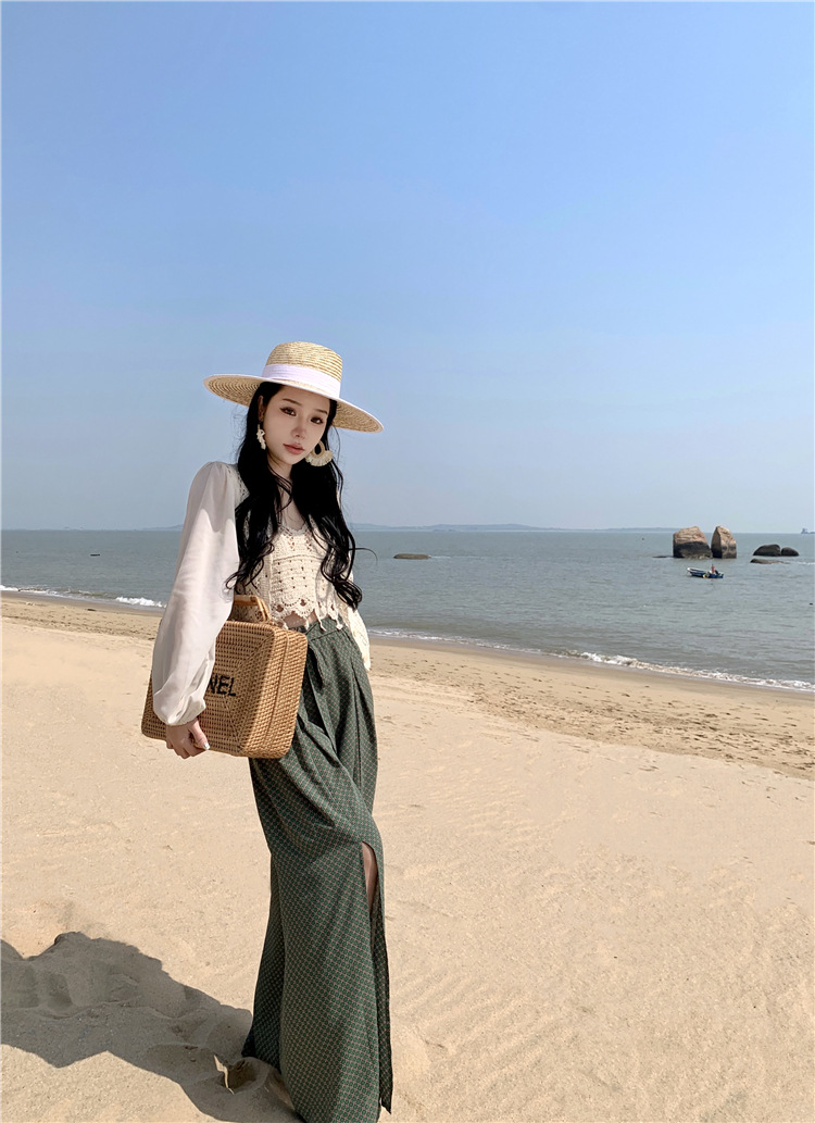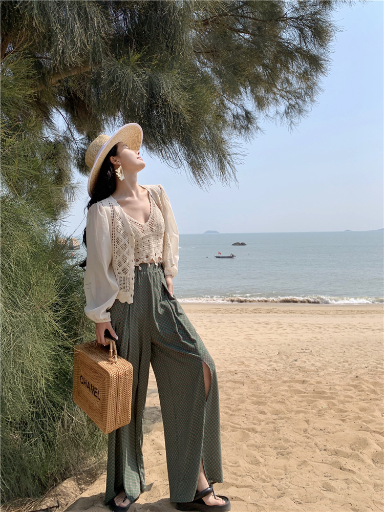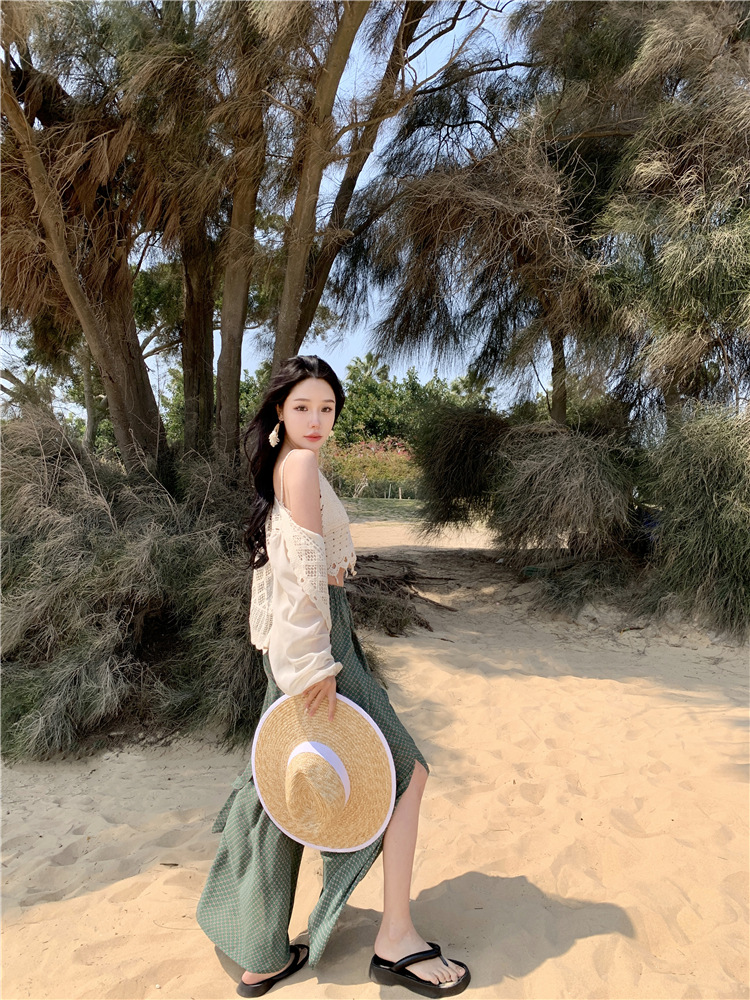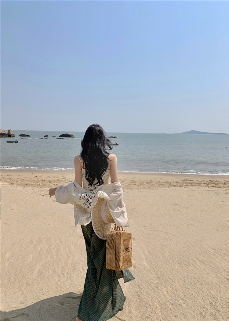 살구색 중공 크로 셰 뜨개질 외부 카디건 여자의 여름 해변 휴가 선 스크린 니트 스티치 쉬폰 슬리브 탑 재킷