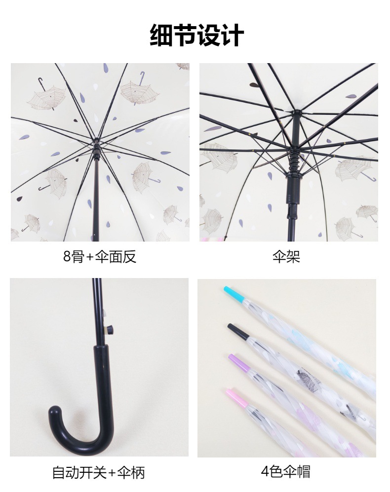 전국 바람 동향 소형 신선 젖빛 투명 우산 소형 우산 빗방울 로고 롱 핸들 직봉 자동 우산 제조 업체 도매스토어 가기