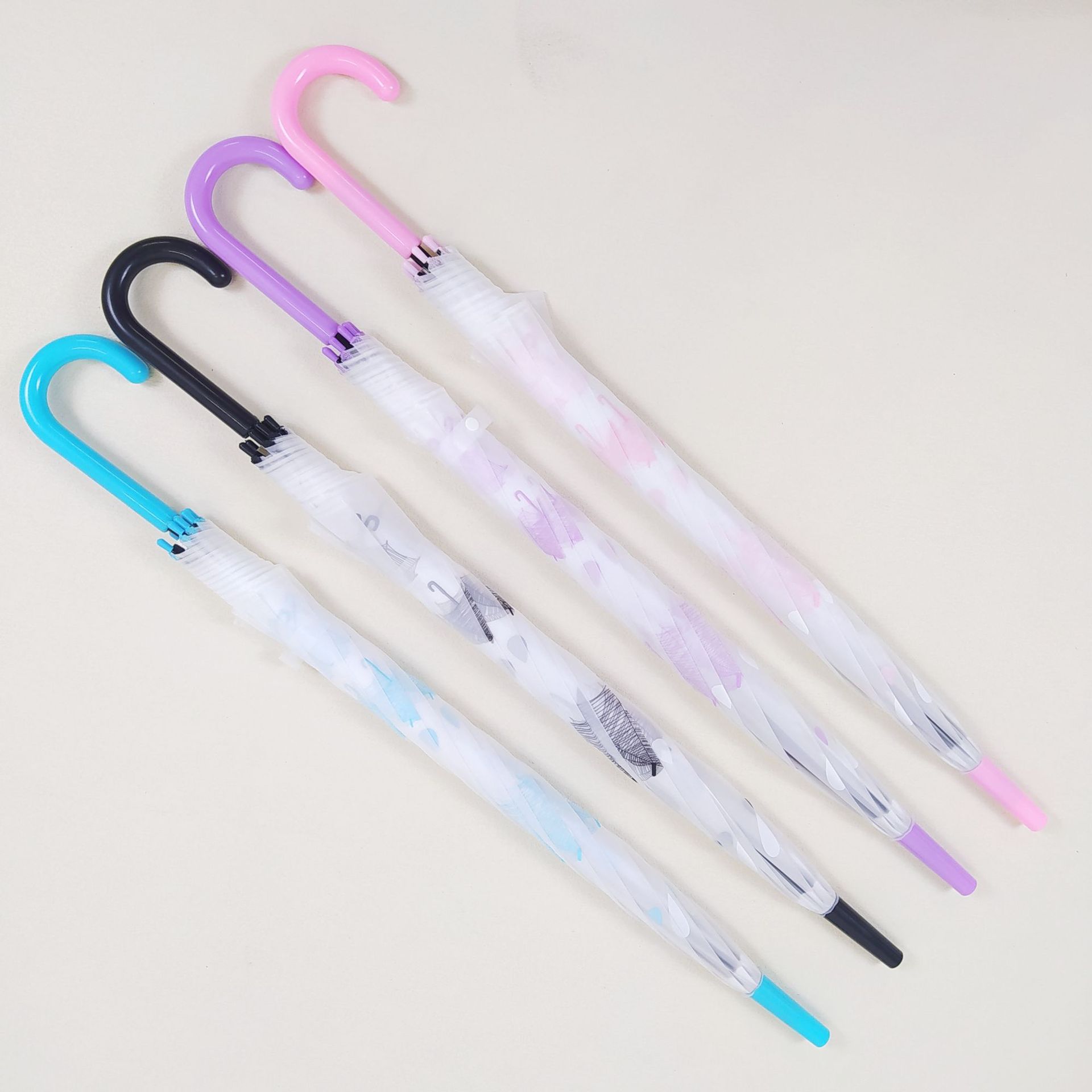 전국 바람 동향 소형 신선 젖빛 투명 우산 소형 우산 빗방울 로고 롱 핸들 직봉 자동 우산 제조 업체 도매