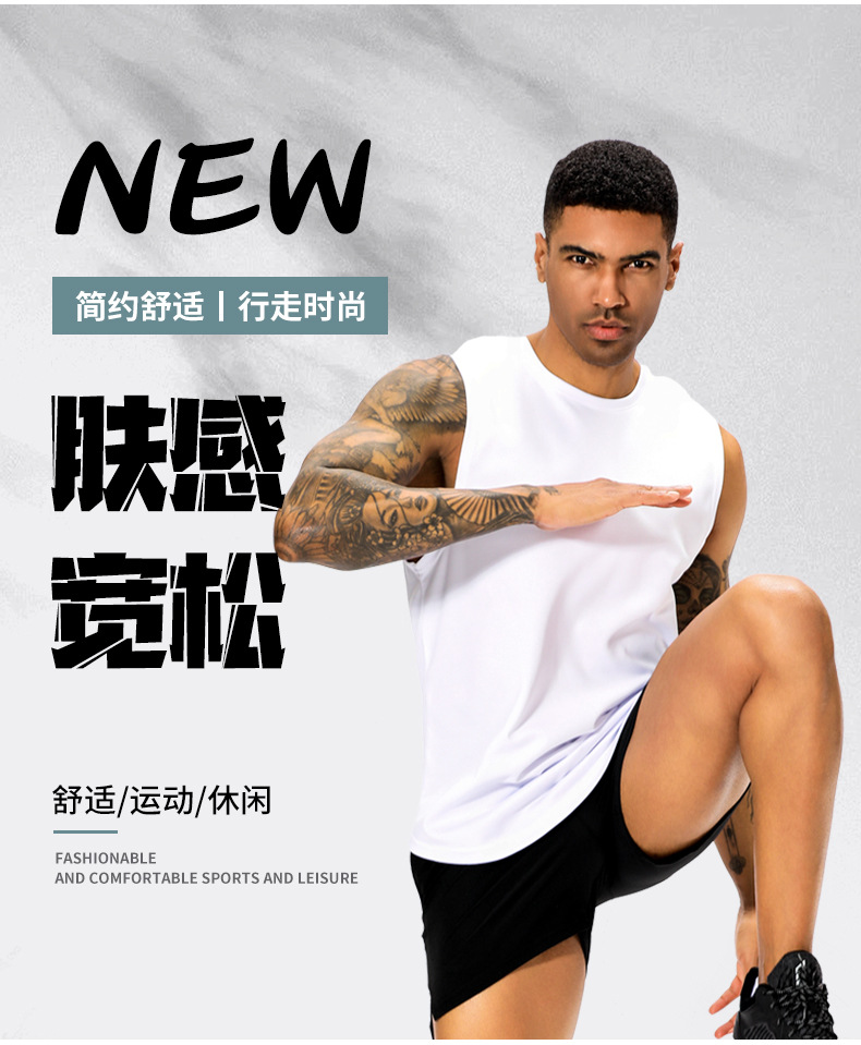 여름 남성 캐주얼 조끼 티셔츠 트렌디 심플 스포츠 단색 투웨이 착용 가능 편안하고 통기성 좋음스토어 가기