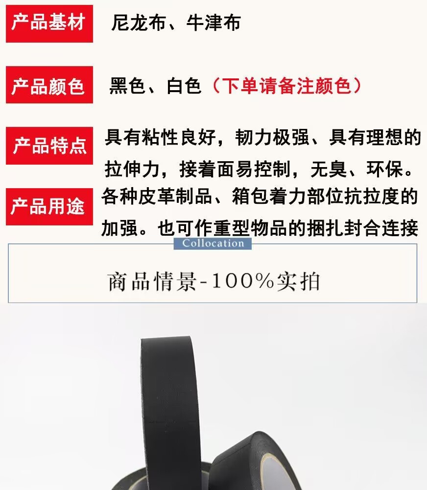 도매 블랙 단면 자체 접착 옥스포드 천 강화 테이프 가죽 신발 핸드백 특수 강화 내마모성 나일론 천스토어 가기