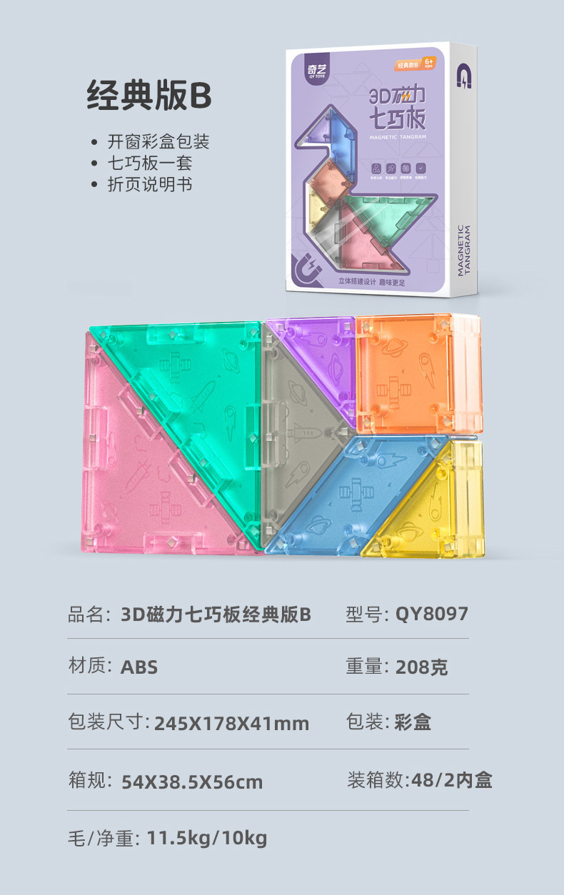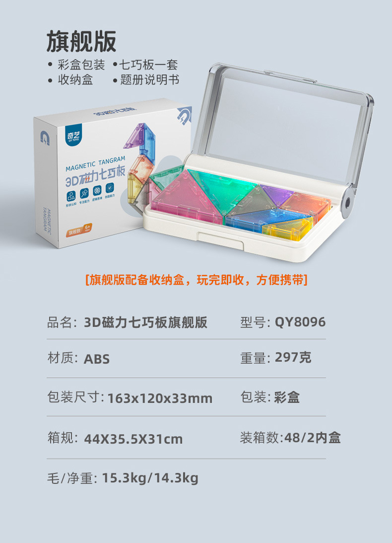 보관 상자가있는 Qiyi 마그네틱 Tangram 3D 퍼즐 빌딩 블록 어린이 교육 조기 교육 사고 훈련 완구스토어 가기