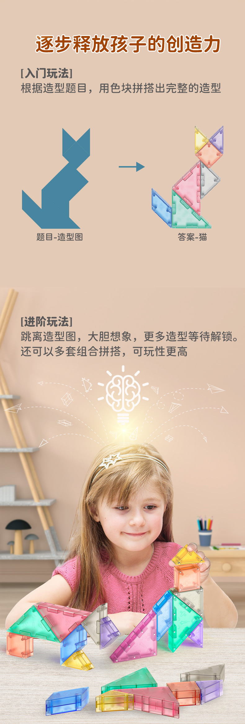 보관 상자가있는 Qiyi 마그네틱 Tangram 3D 퍼즐 빌딩 블록 어린이 교육 조기 교육 사고 훈련 완구
