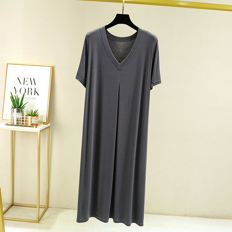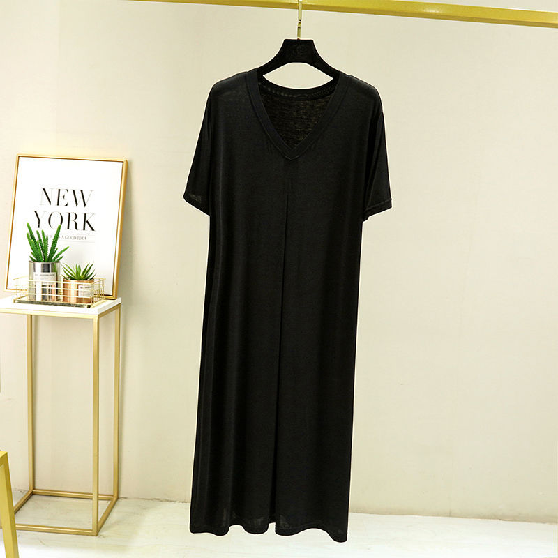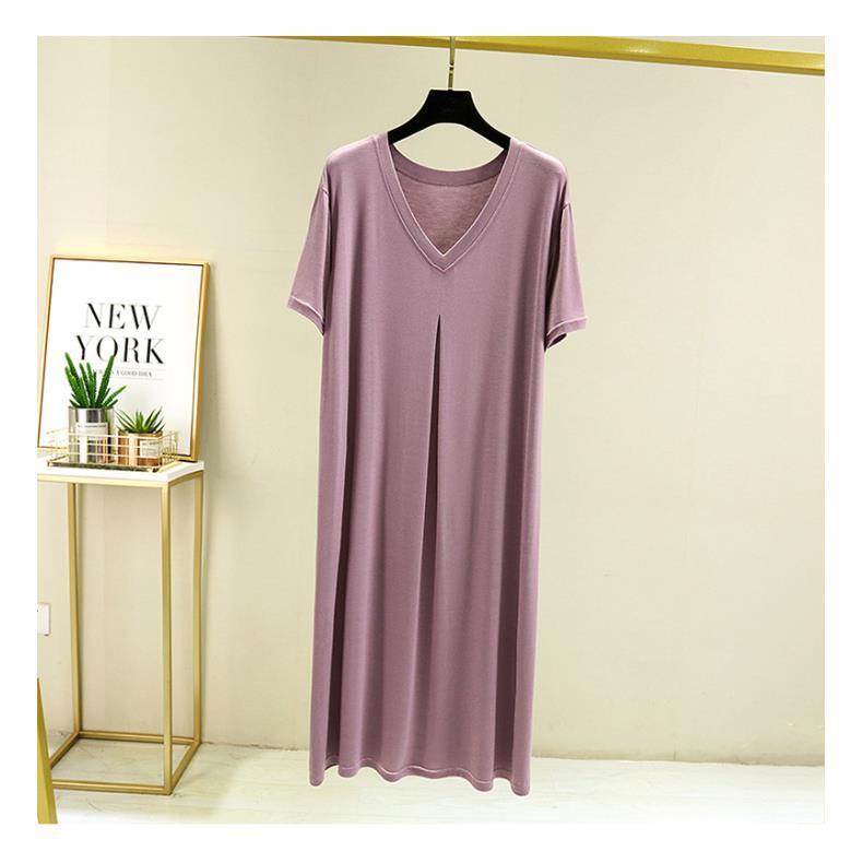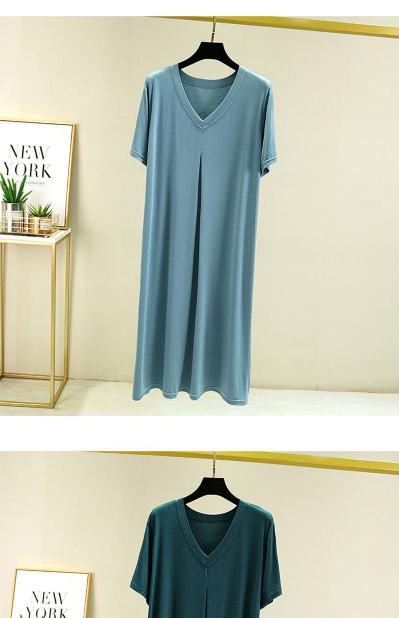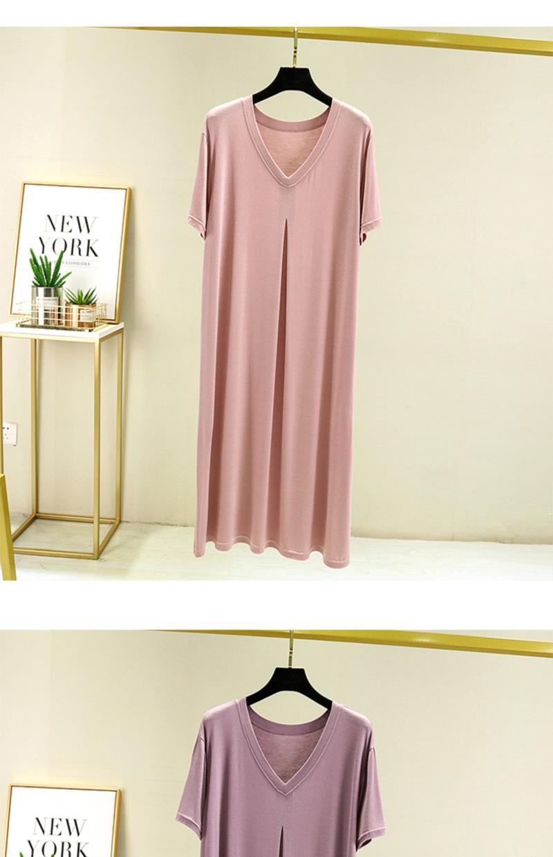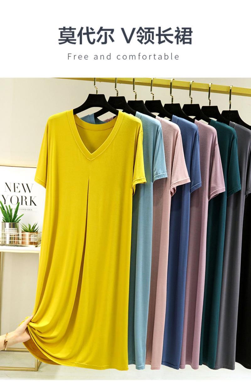 [자동 유통 독점] 모달 잠옷 여성용 여름 플러스 사이즈 느슨한 얇은 반팔 원피스 가정 의류스토어 가기