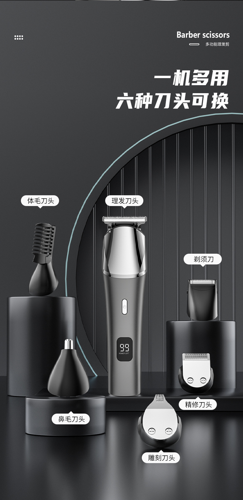 전기 헤어 클리퍼 세트 5-in-one 디지털 디스플레이 세척 전기 클리퍼 usb 충전 전문 오일 헤드 조각 푸시 크로스 국경