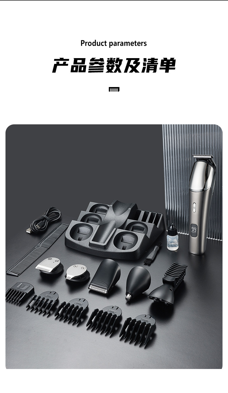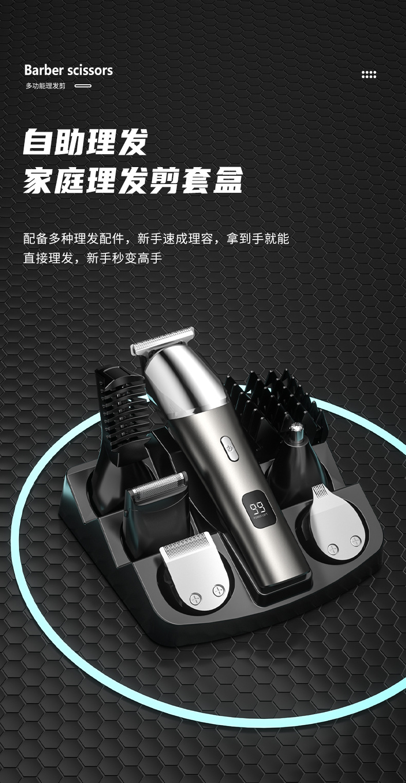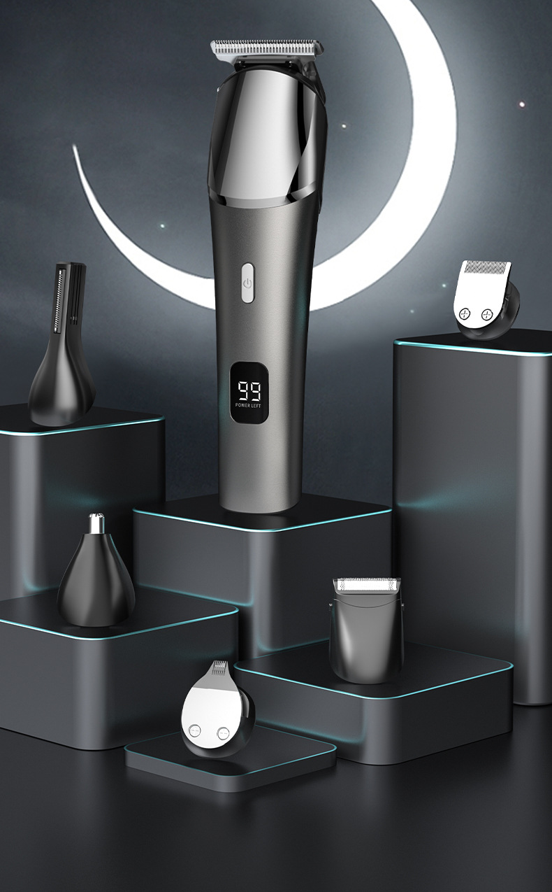 전기 헤어 클리퍼 세트 5-in-one 디지털 디스플레이 세척 전기 클리퍼 usb 충전 전문 오일 헤드 조각 푸시 크로스 국경스토어 가기