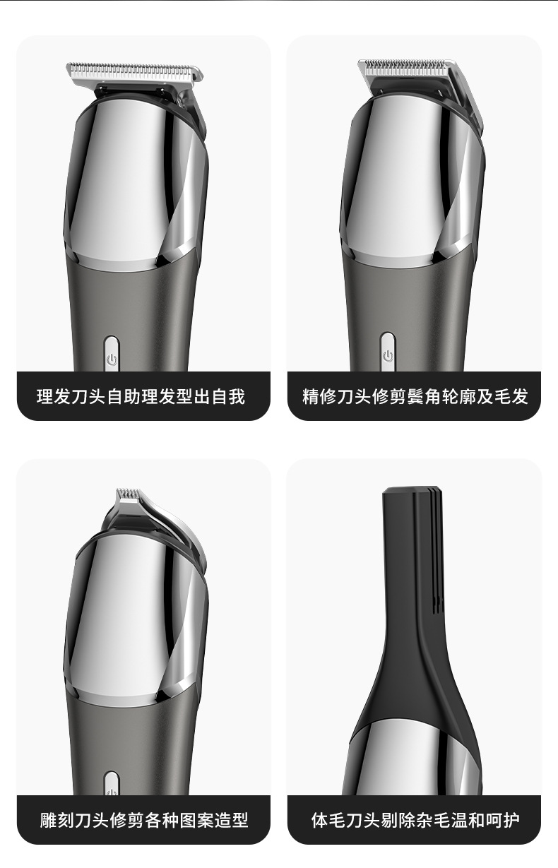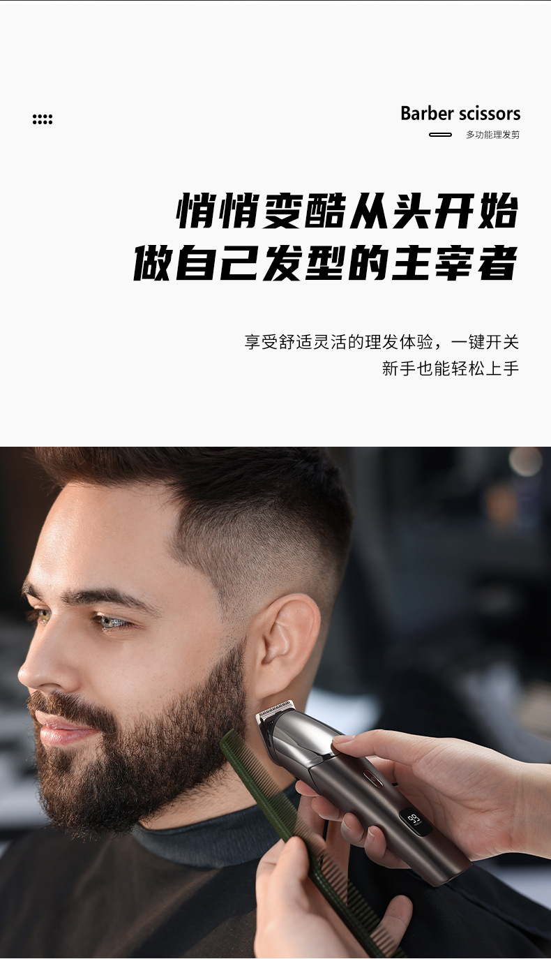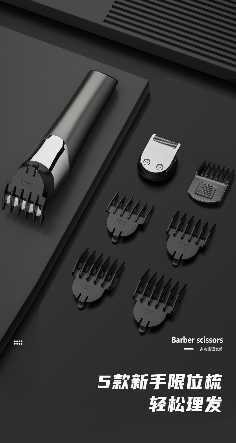 전기 헤어 클리퍼 세트 5-in-one 디지털 디스플레이 세척 전기 클리퍼 usb 충전 전문 오일 헤드 조각 푸시 크로스 국경스토어 가기