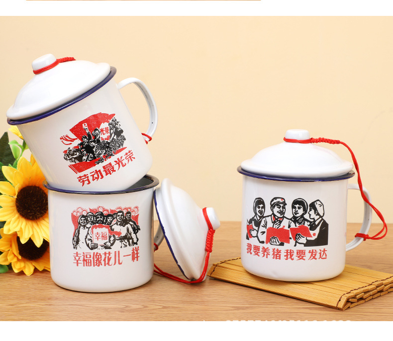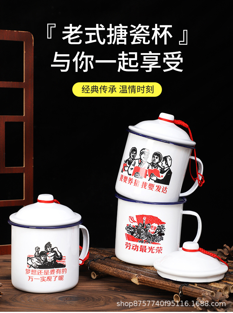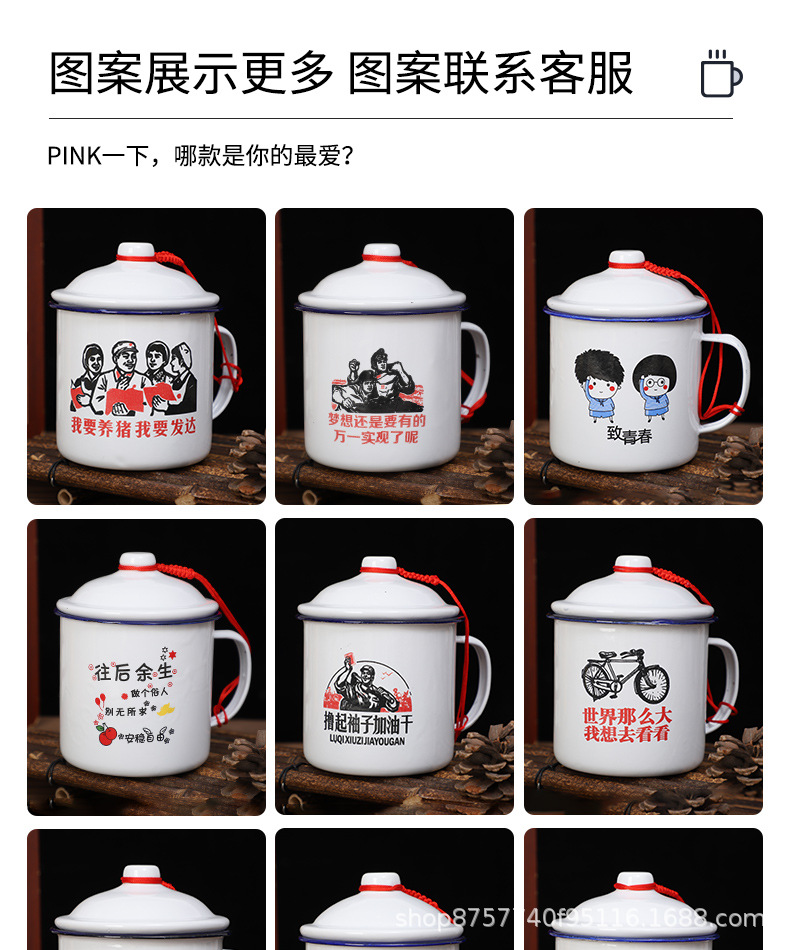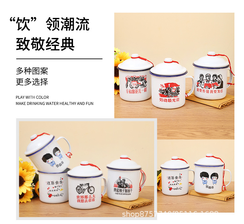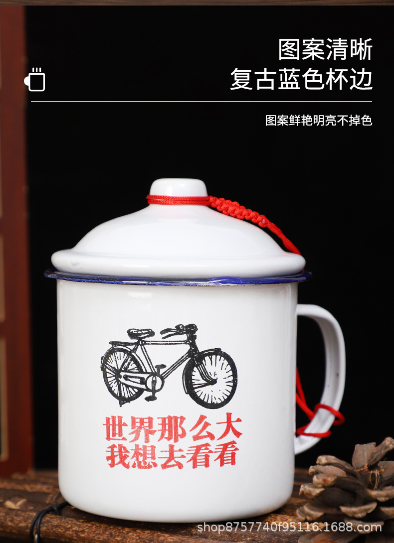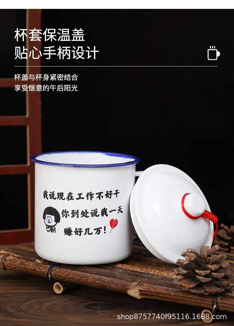 빈티지 빈티지 머그 도매 학생 사무실 기숙사 에나멜 차 항아리 뚜껑 인쇄 로고가있는 대용량스토어 가기