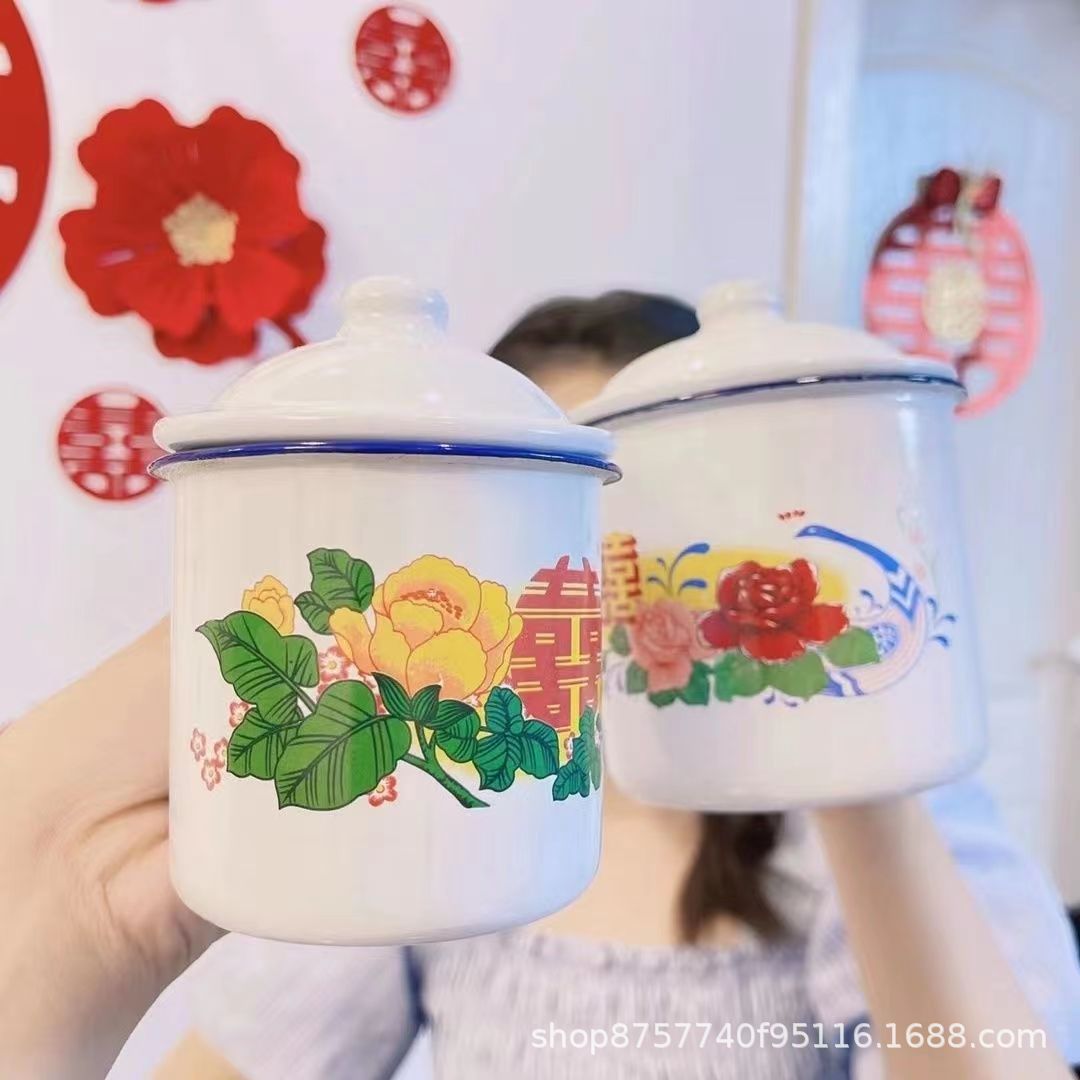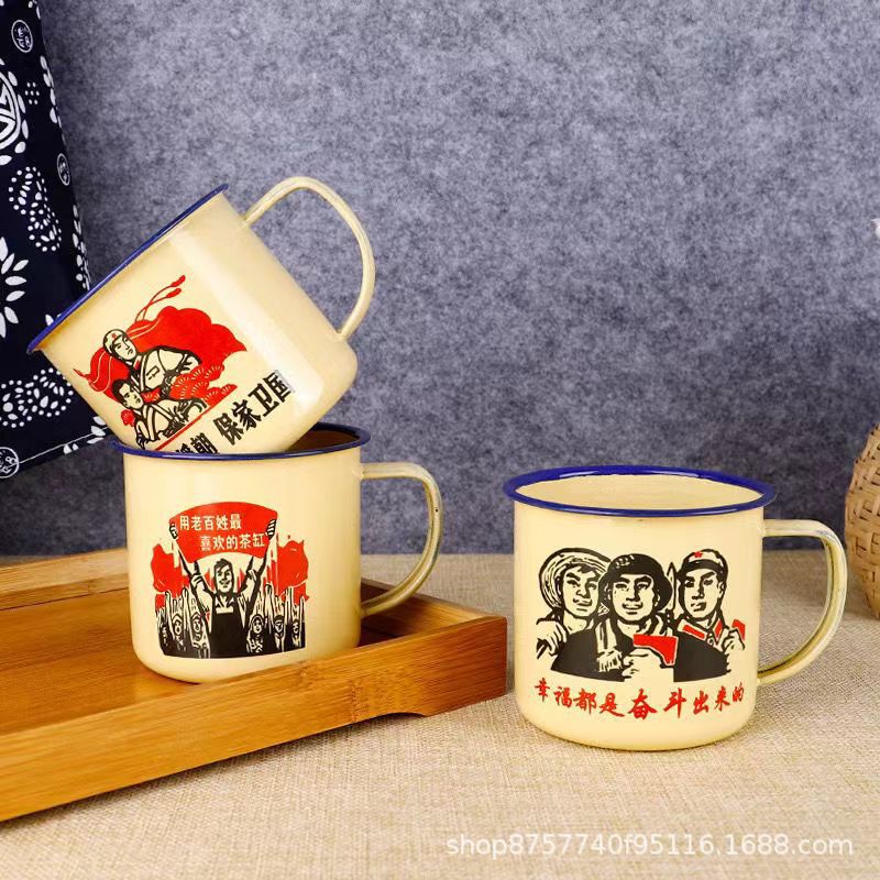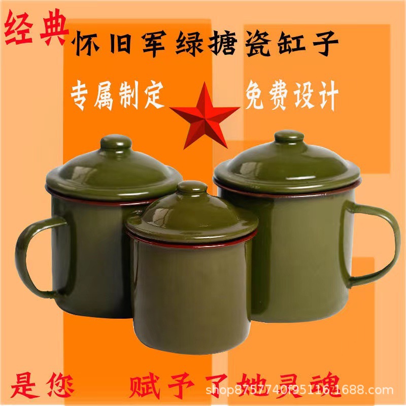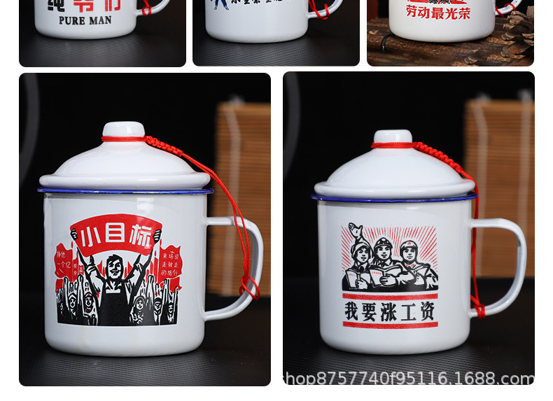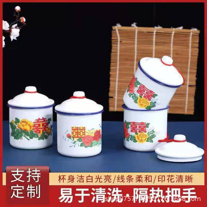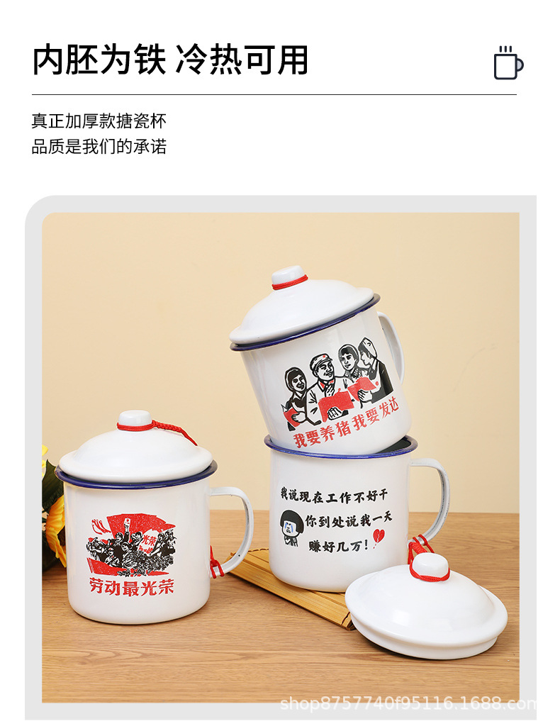 빈티지 빈티지 머그 도매 학생 사무실 기숙사 에나멜 차 항아리 뚜껑 인쇄 로고가있는 대용량스토어 가기