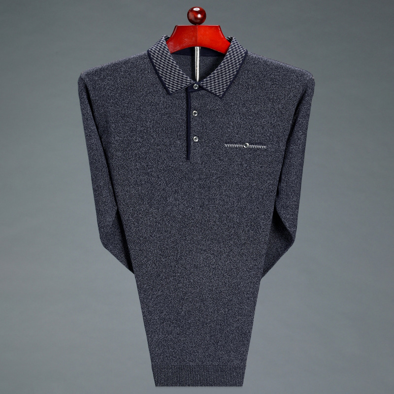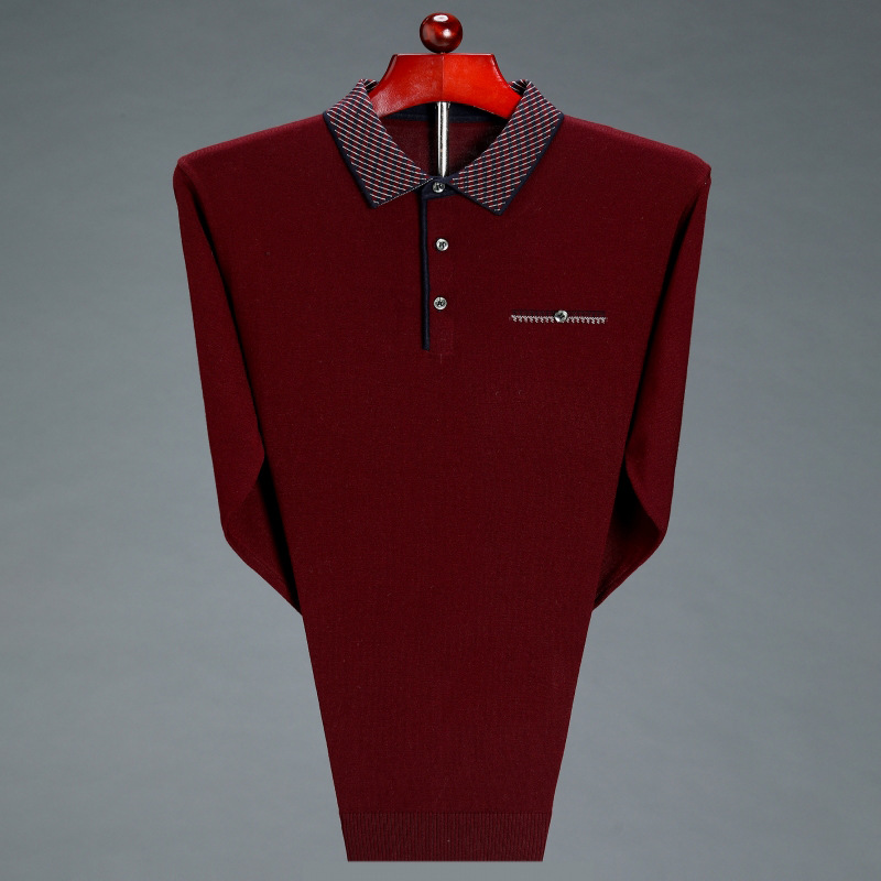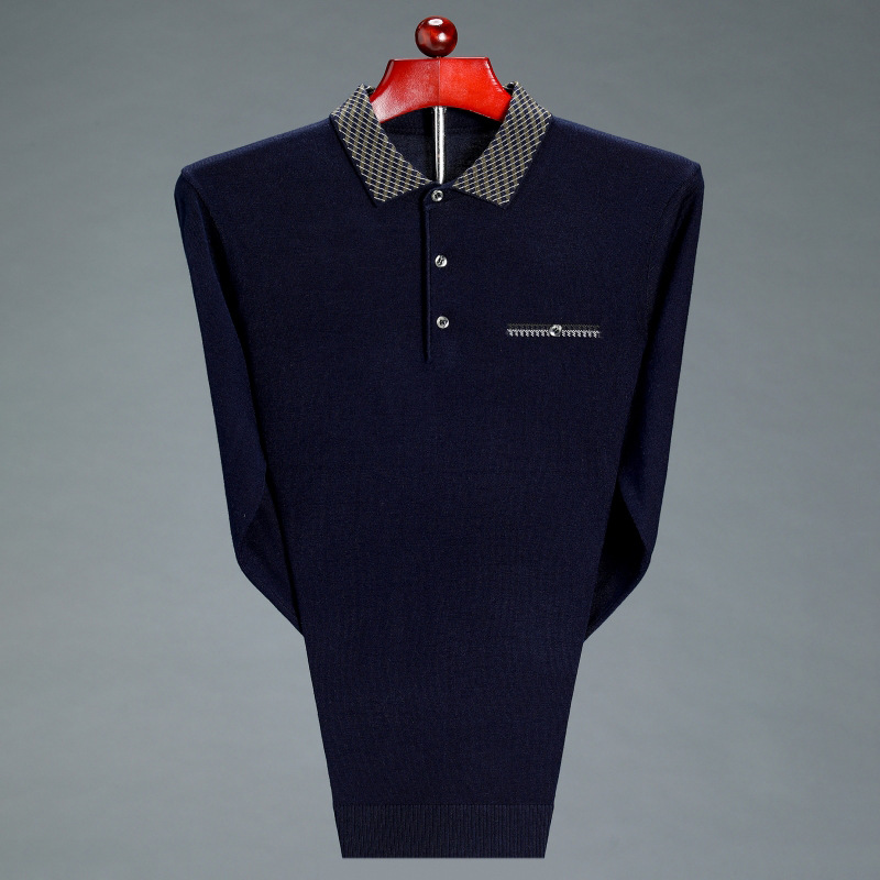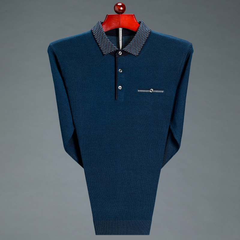 2021 비즈니스 캐주얼 남성 가을 옷깃 긴 소매 얇은 바닥 스웨터 3080 긴 소매 자수 가죽