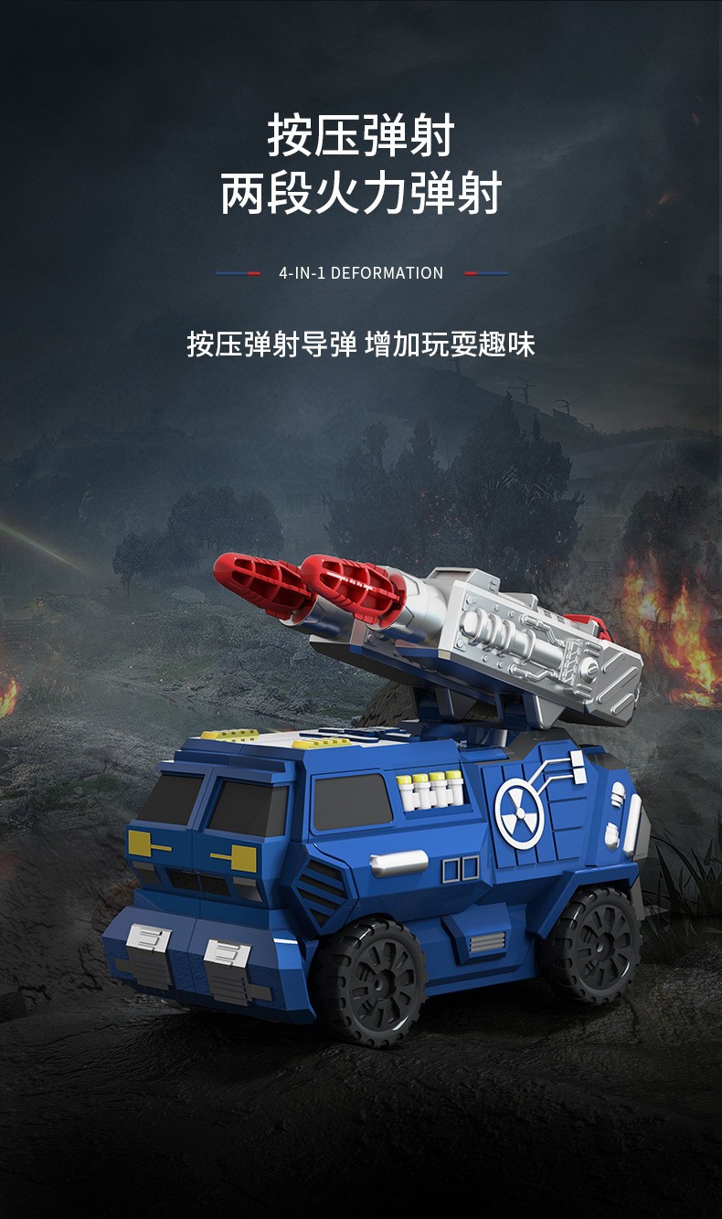 어린이 장난감 적합 변형 로봇 자동차 미사일 자동차 발사 포탄 4 in 1 메카 조립 모델 소년