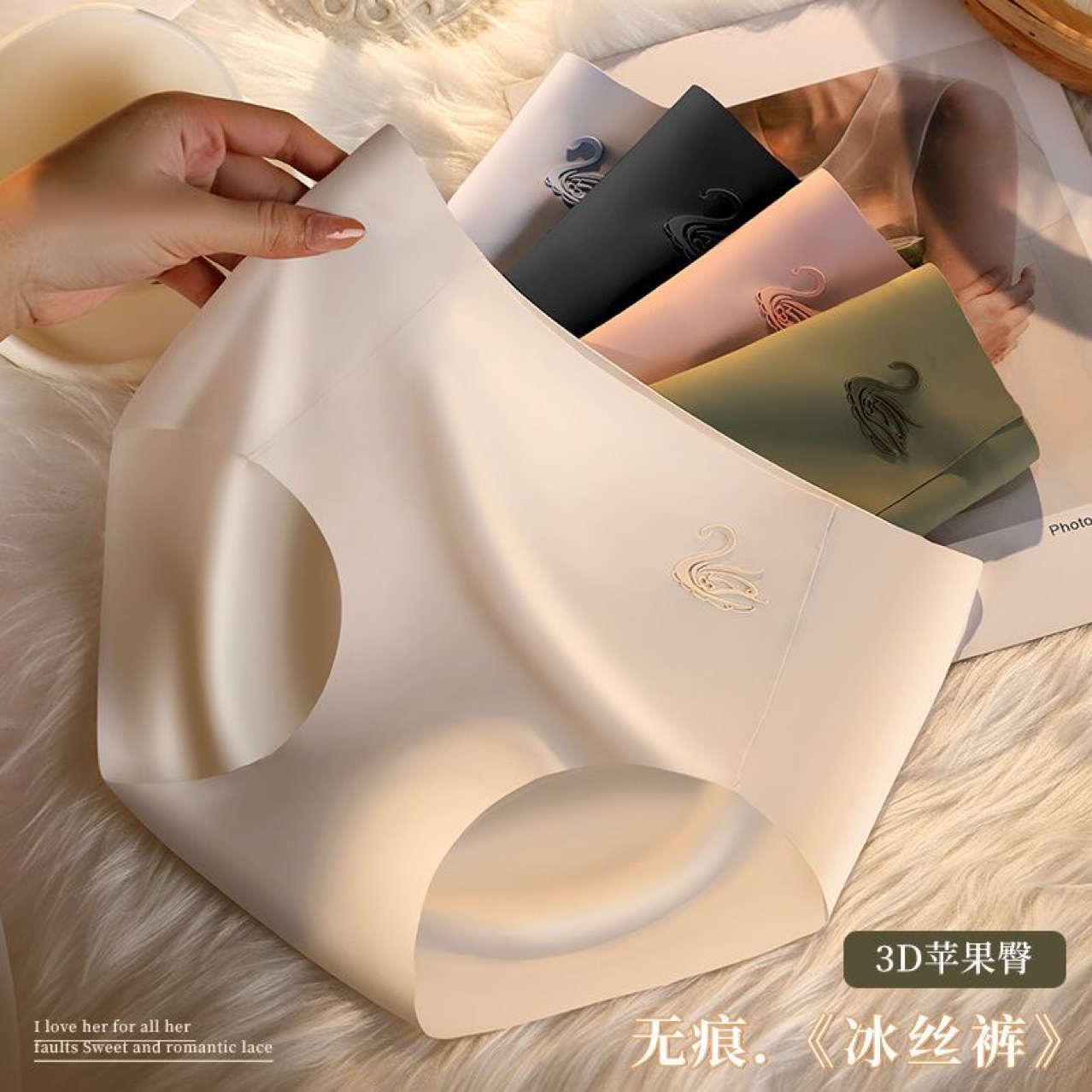 아이스 실크 추적 속옷 여성용 통기성 얇은 중간 허리 소녀의 섹시한 엉덩이 면 가랑이 달콤한 삼각형 요가 바지스토어 가기