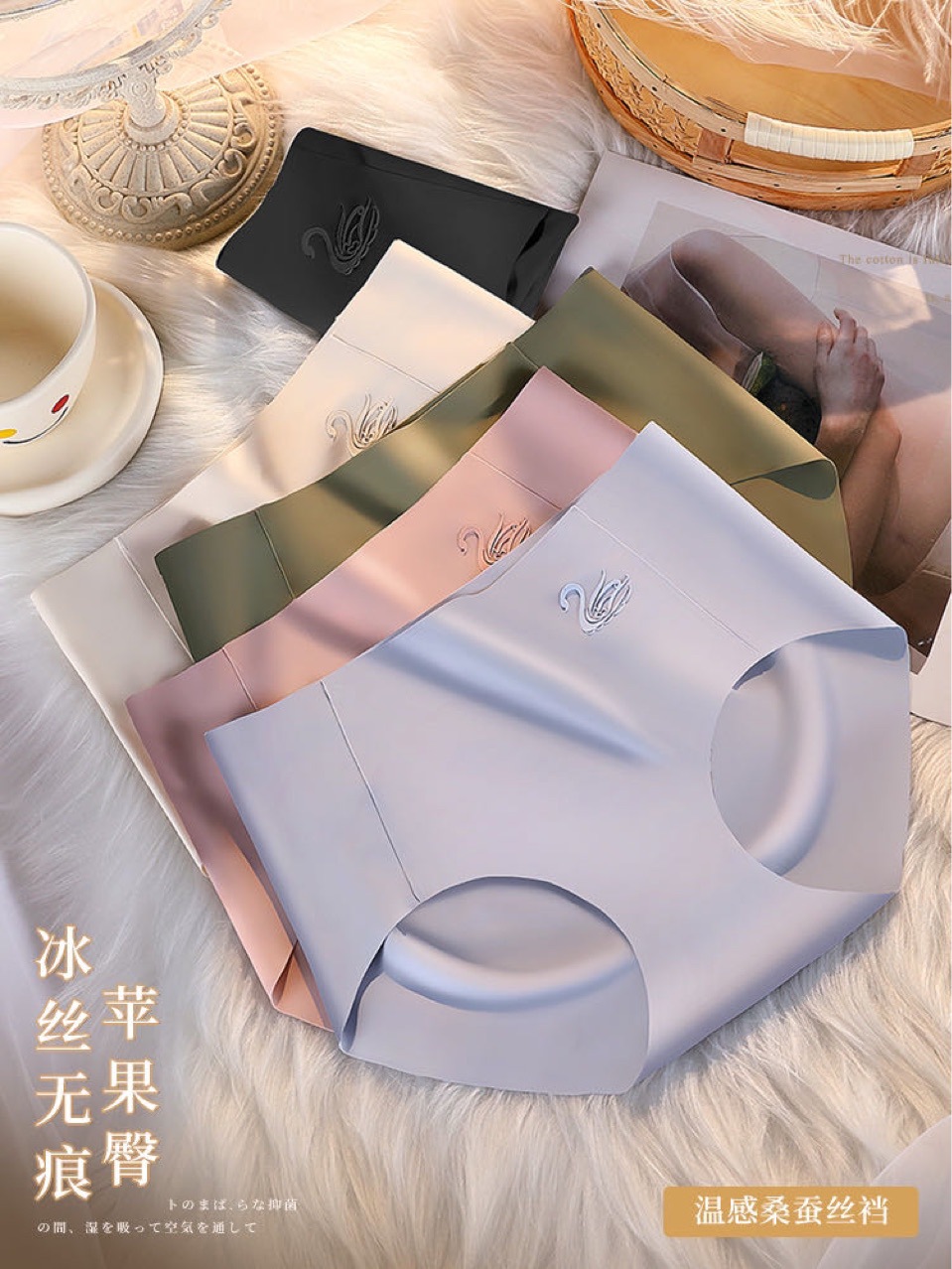 아이스 실크 추적 속옷 여성용 통기성 얇은 중간 허리 소녀의 섹시한 엉덩이 면 가랑이 달콤한 삼각형 요가 바지