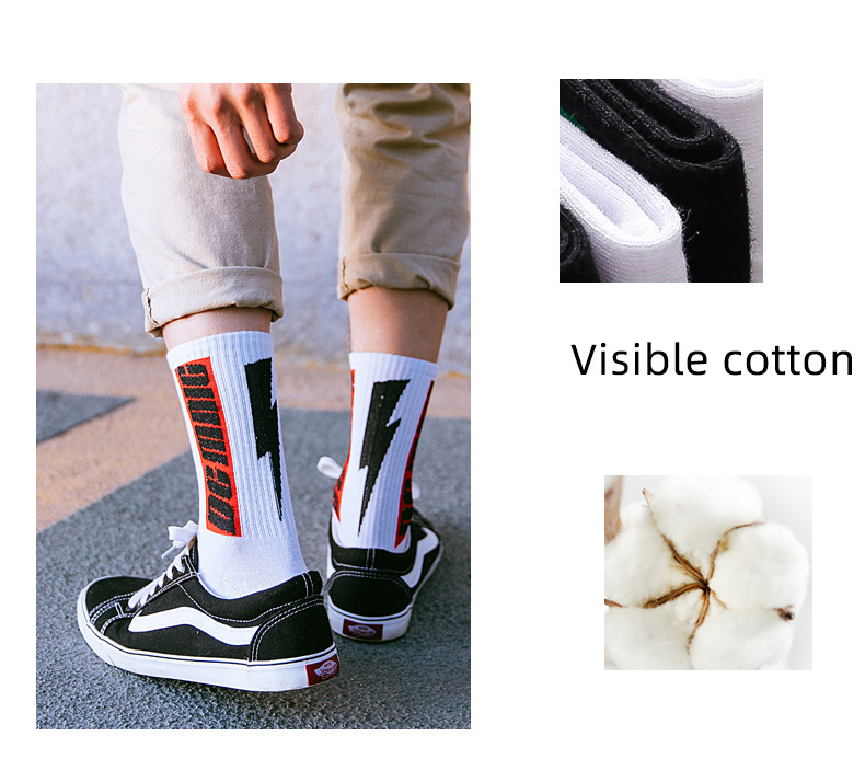 남성용 중목 양말, 유럽 및 미국 스트리트 힙합 스타일 단색 롱 양말, 가을 겨울용 면 양말, 인스 스타일 스포츠 농구 양말스토어 가기