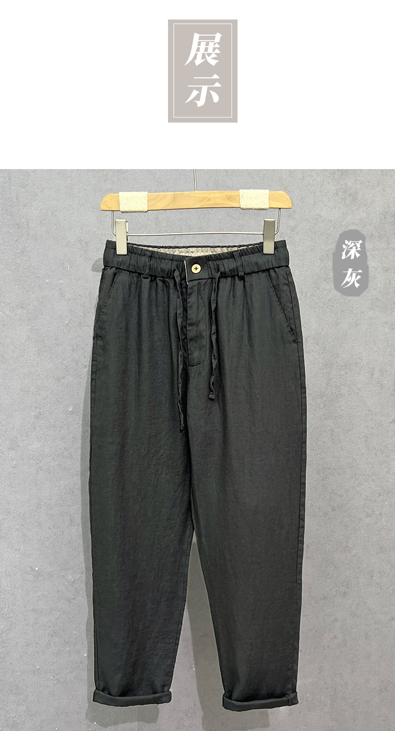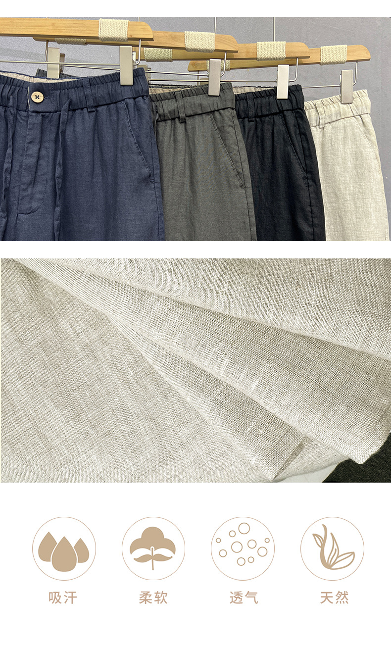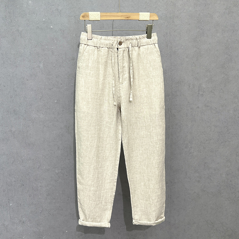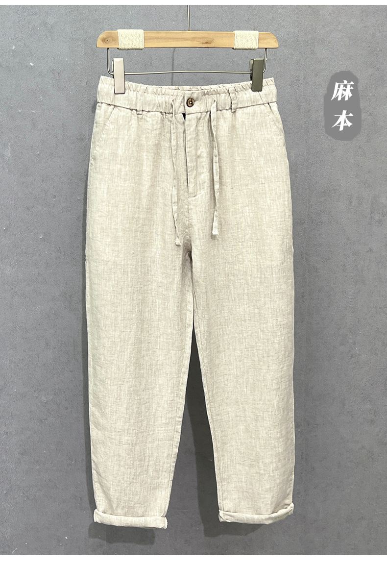 고급 퓨어 린넨 남성 바지 여름 얇은 라이트 럭셔리 비즈니스 캐주얼 바지 남성 린넨 바지 느슨한 스트레이트 팬츠스토어 가기
