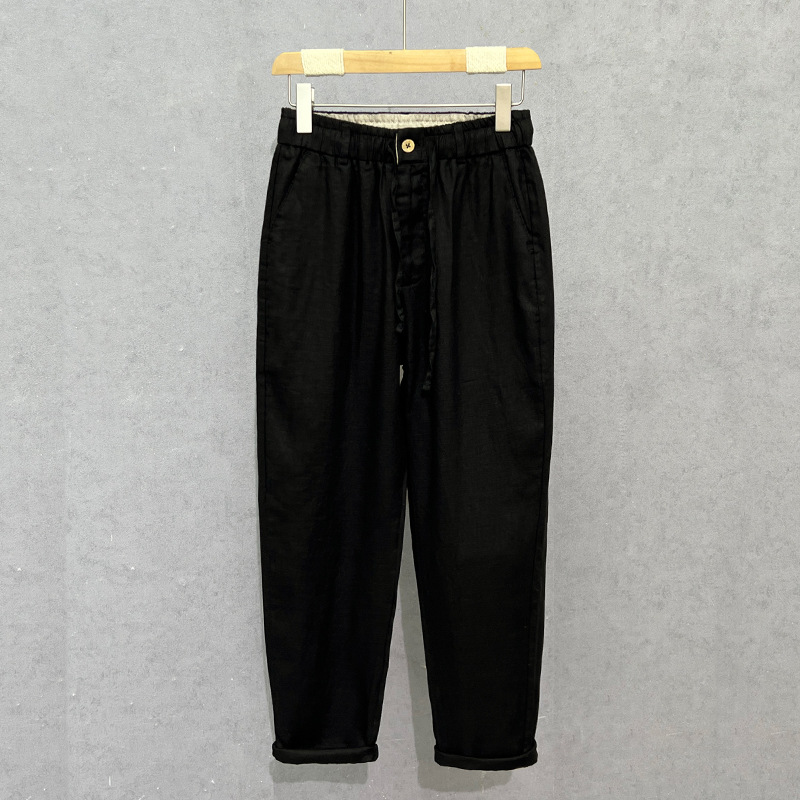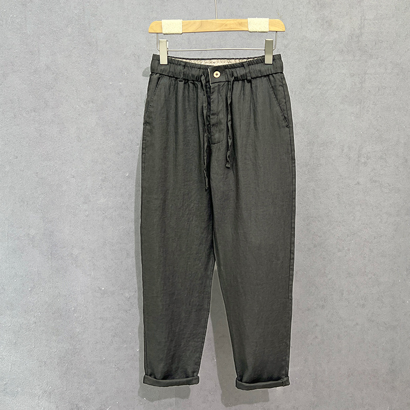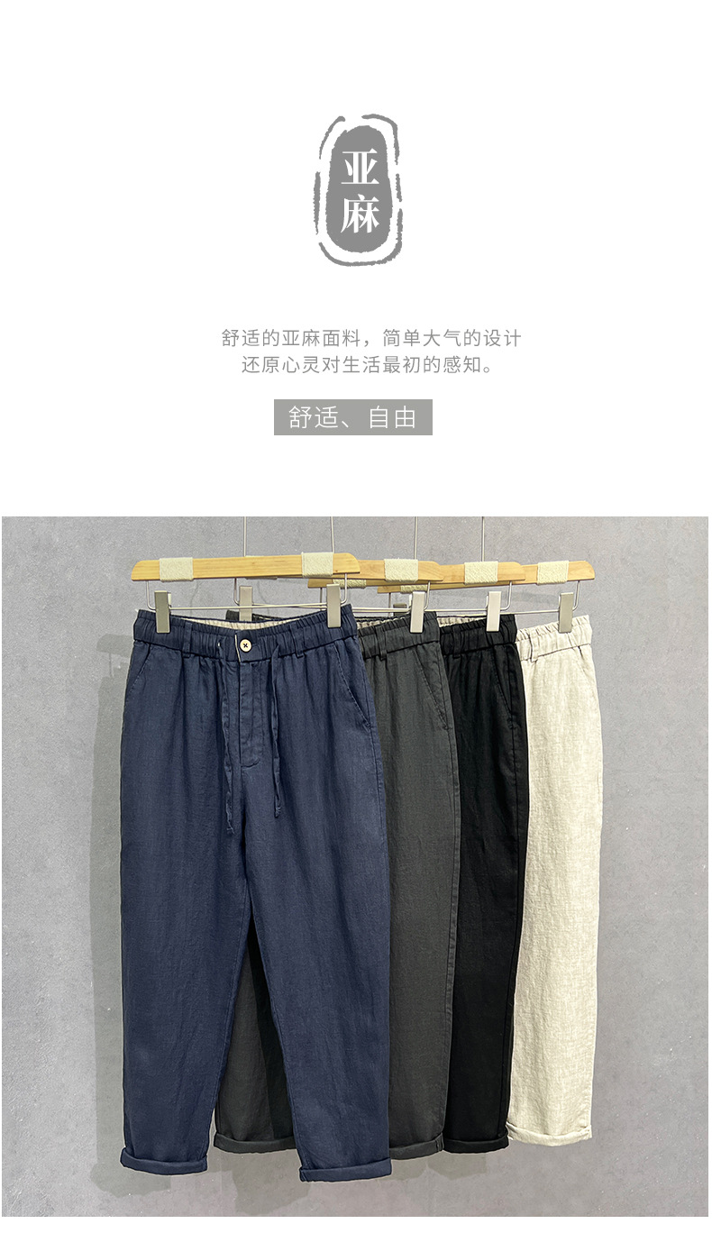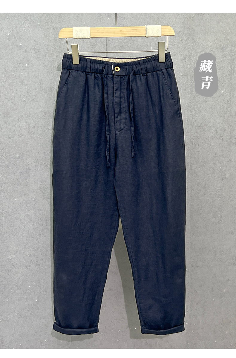 고급 퓨어 린넨 남성 바지 여름 얇은 라이트 럭셔리 비즈니스 캐주얼 바지 남성 린넨 바지 느슨한 스트레이트 팬츠스토어 가기