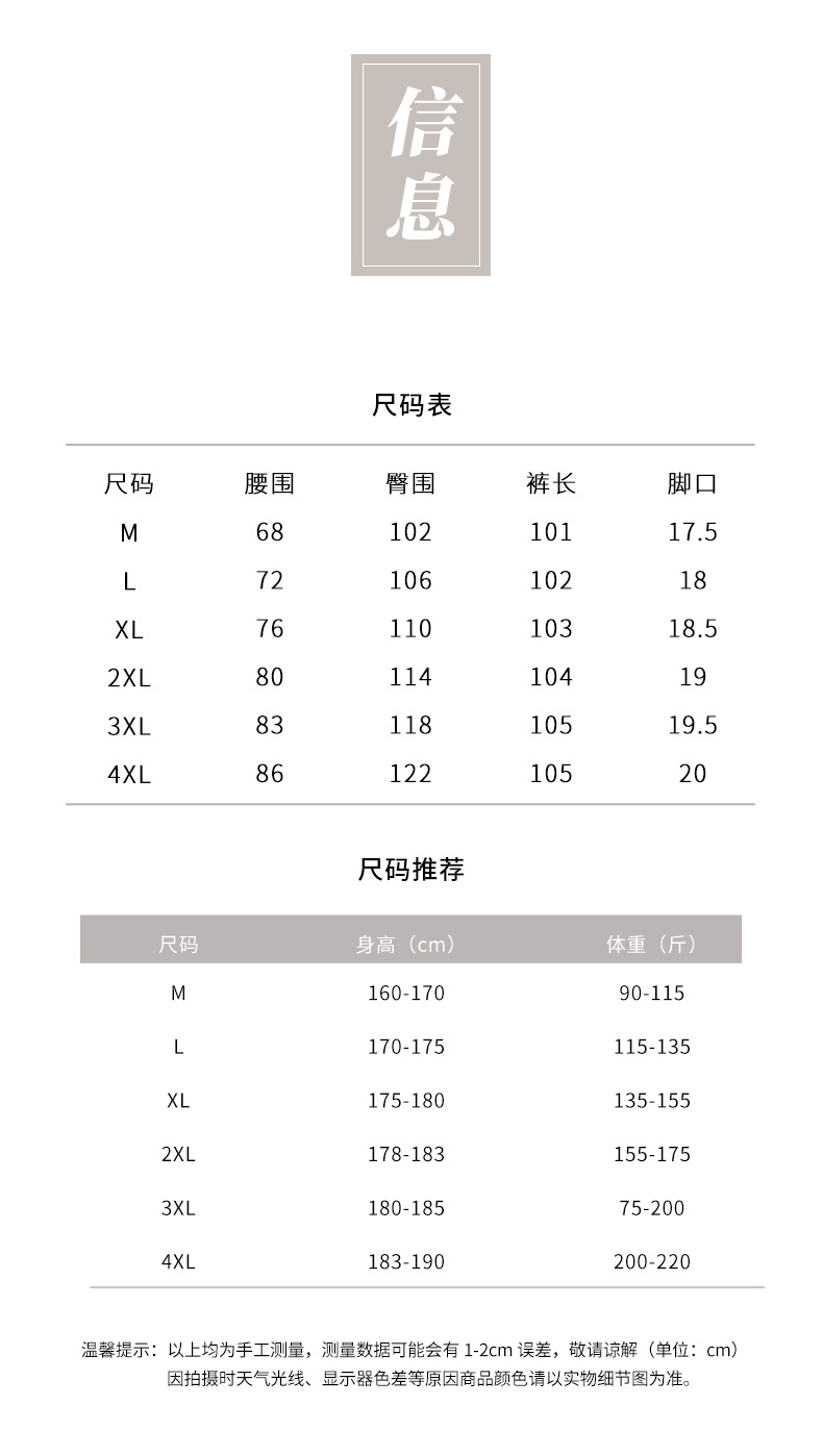 • 3XL 바지 길이 105CM 권장 87.50 kg-100.00 kg