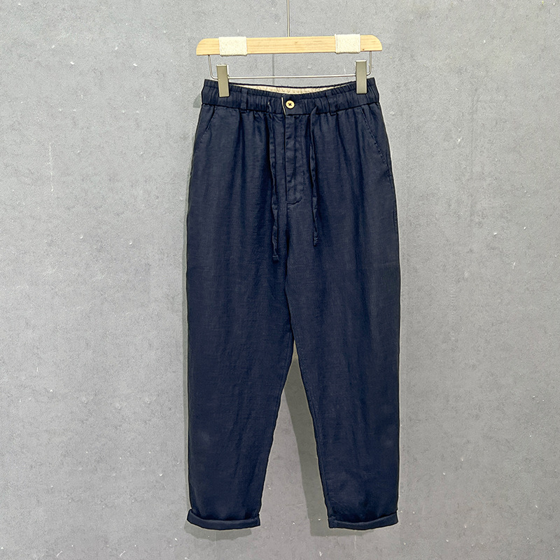 고급 퓨어 린넨 남성 바지 여름 얇은 라이트 럭셔리 비즈니스 캐주얼 바지 남성 린넨 바지 느슨한 스트레이트 팬츠