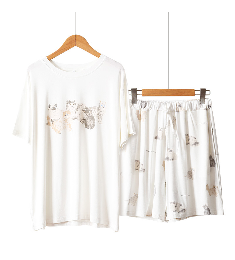 일본 스타일 간단한 달콤한 만화 얇은 모달 잠옷 봄과 여름 여성용 반팔 반바지 세트 바지 가정 의류스토어 가기