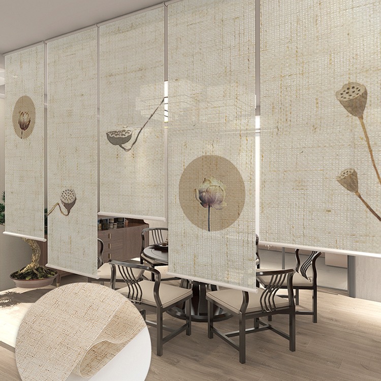 Tongchuang의 새로운 중국 린넨 커튼 롤러 커튼 일본 찻집 거실 조명 전송 교수형 커튼 파티션 그늘 커튼 그리기 커튼