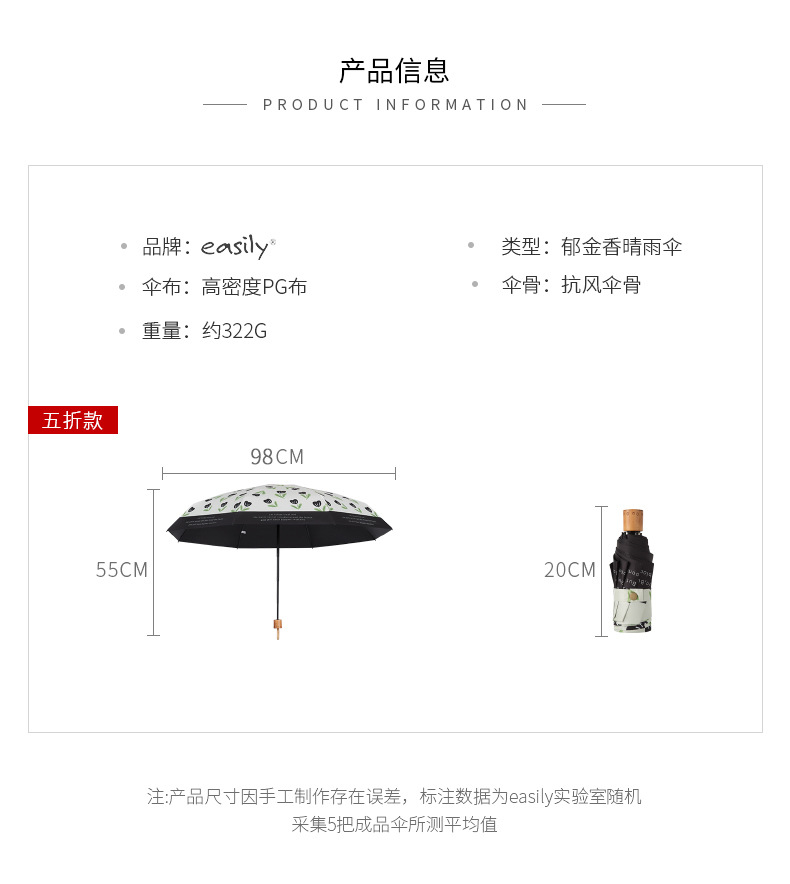 쉽게 50% 할인 8 본 작은 향기로운 바람 우산 숙녀 검정 고무 선크림 자외선 차단 UPF50 + 차양 우산