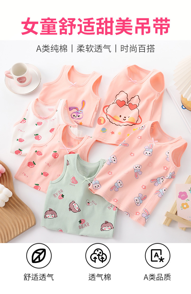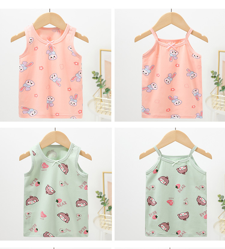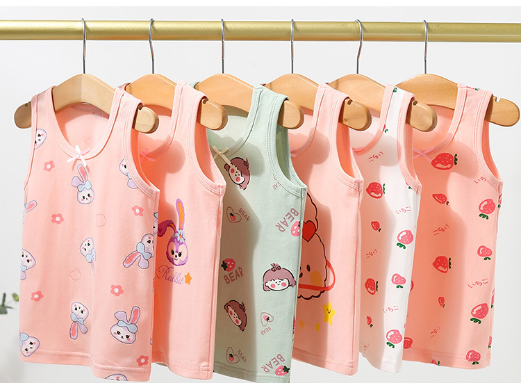 2024 여름 새로운 어린이 조끼 라이크라 만화 인쇄 소녀 캐미솔 조끼 I 자형 조끼 도매스토어 가기