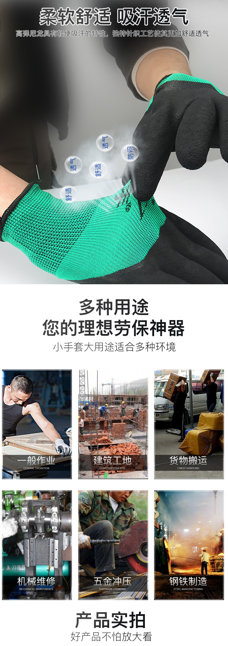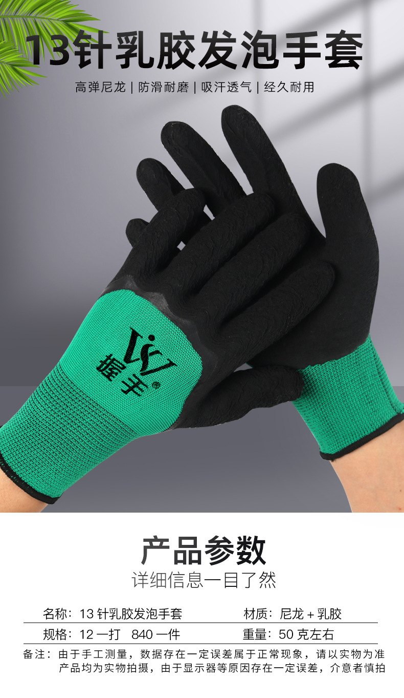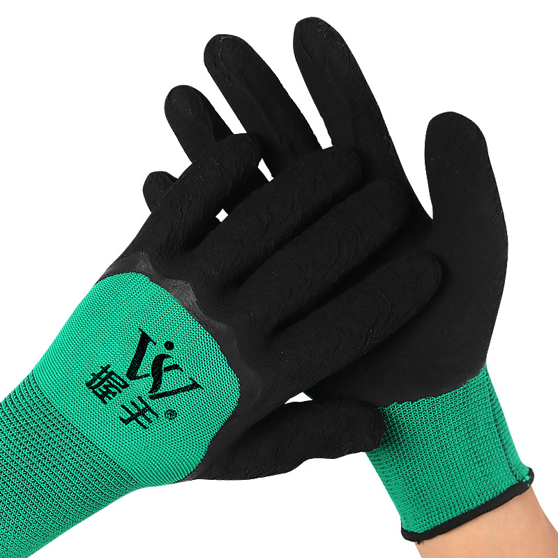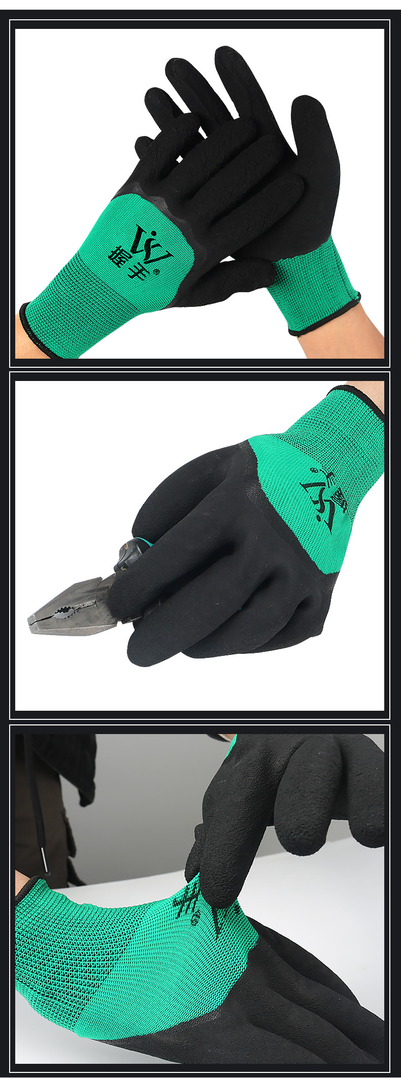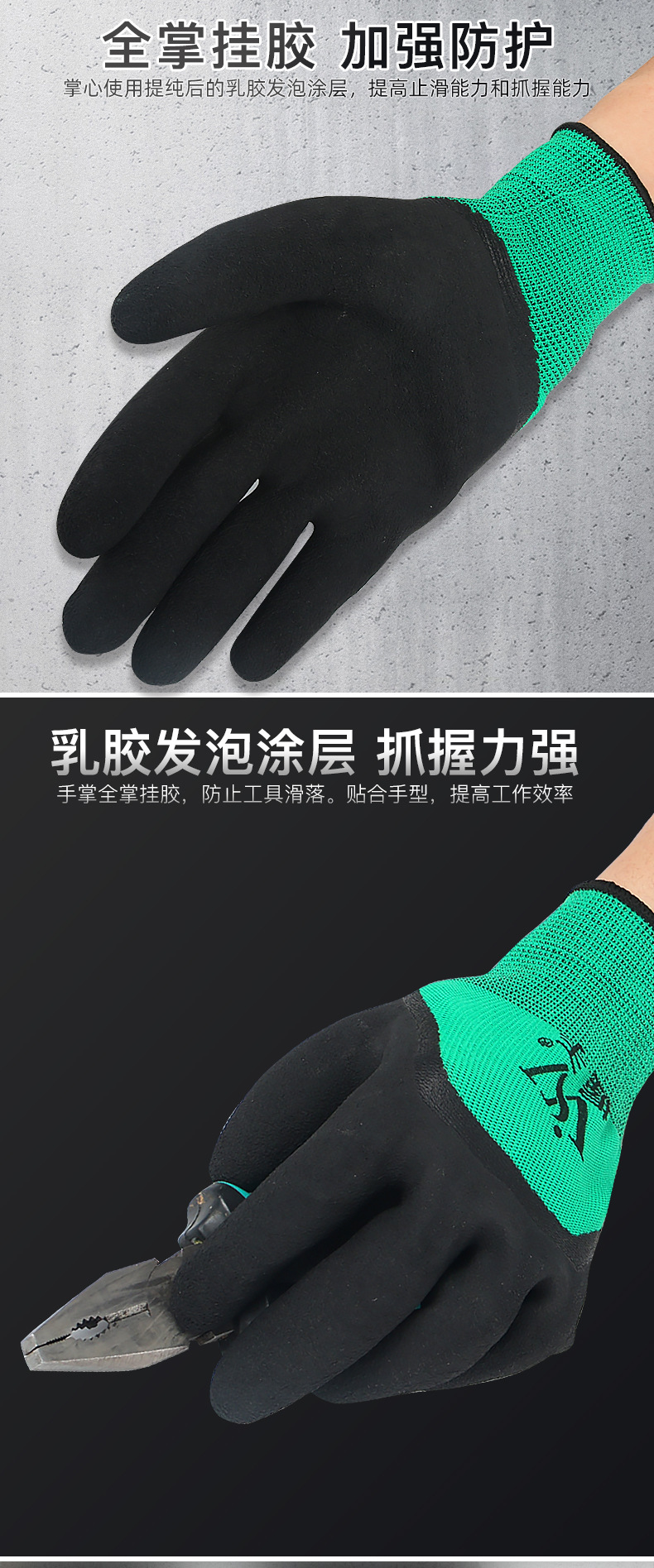 악수 녹색 원사 검정 폼 장갑 고무 장갑 내마모성 미끄럼 방지 디핑 장갑 현장 작업 장갑 도매스토어 가기