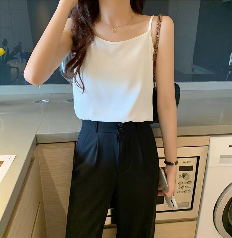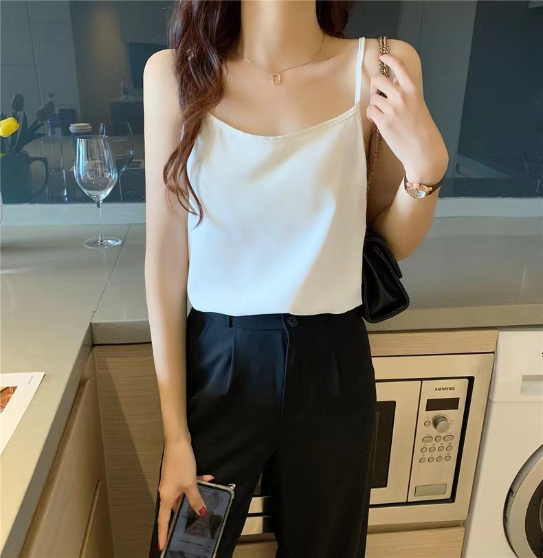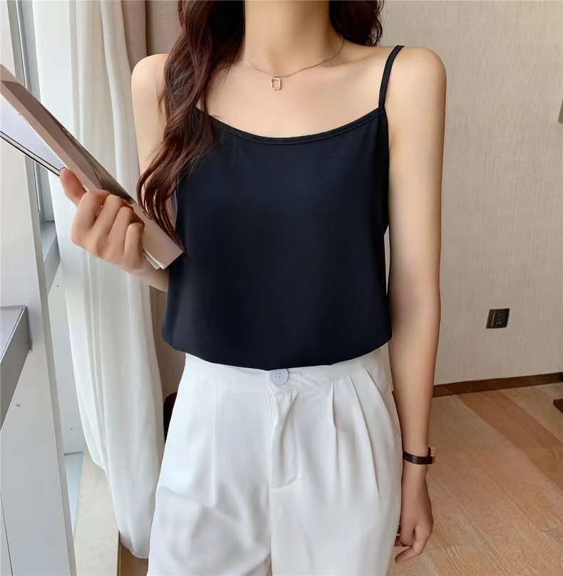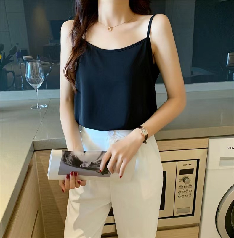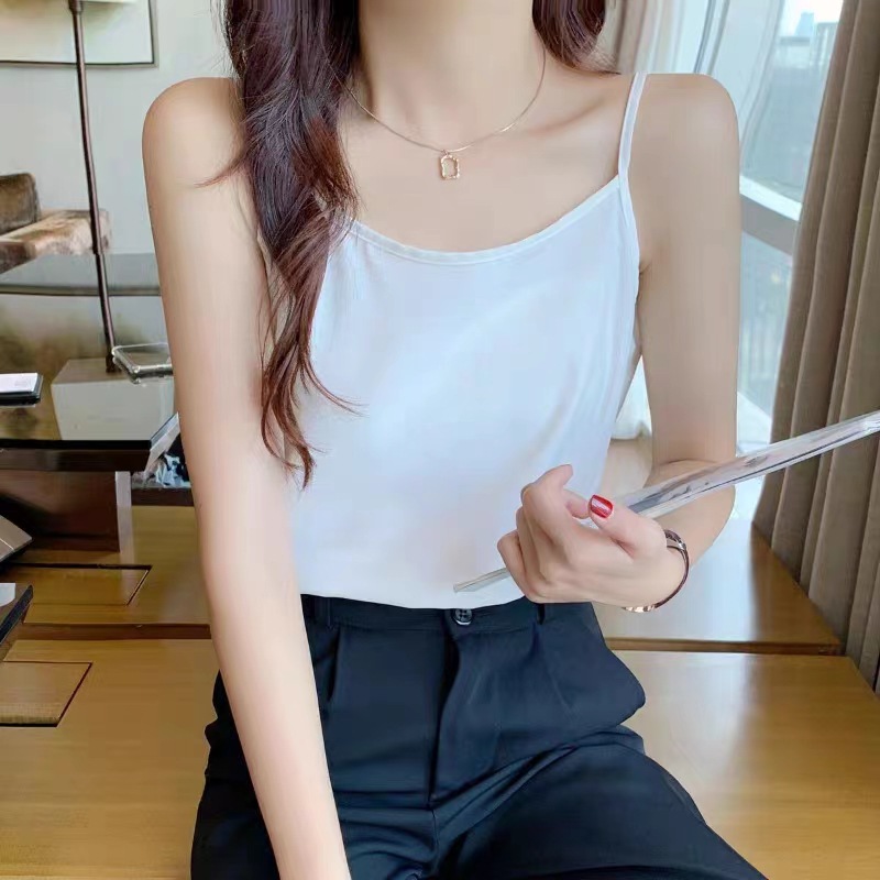 여름 한국식 단색 카미솔 기본 아이스 실크 새로운 직물 높은 탄성 슬림베이스 작은 조끼스토어 가기