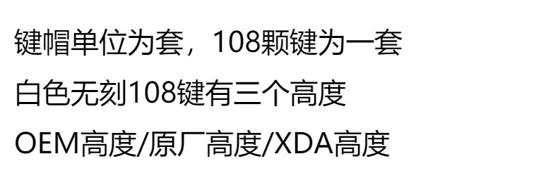 XDA 높이 흰색 비각인 키 캡 PBT 재질 원래 높이 108 키 기계식 키 캡 흰색 소재