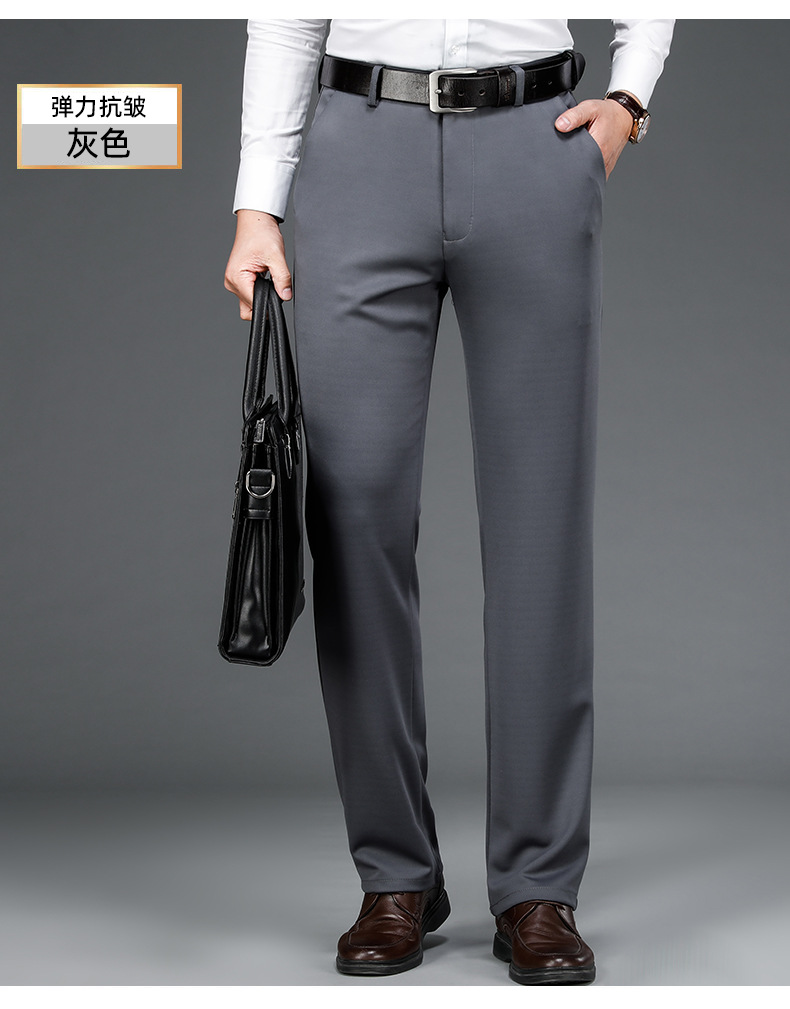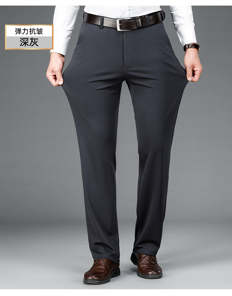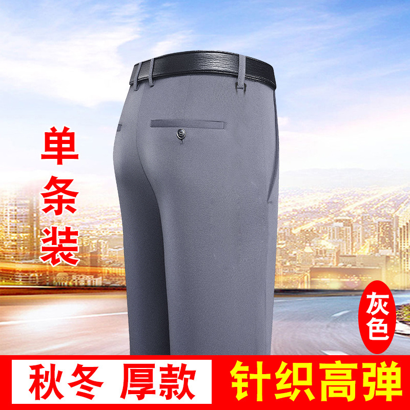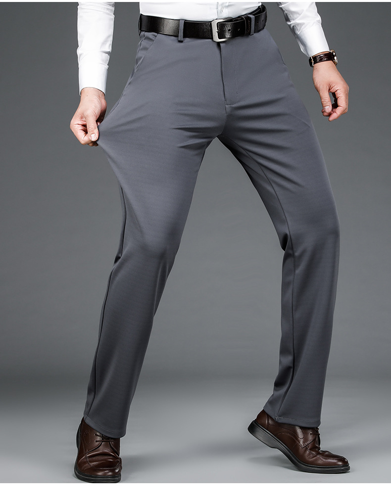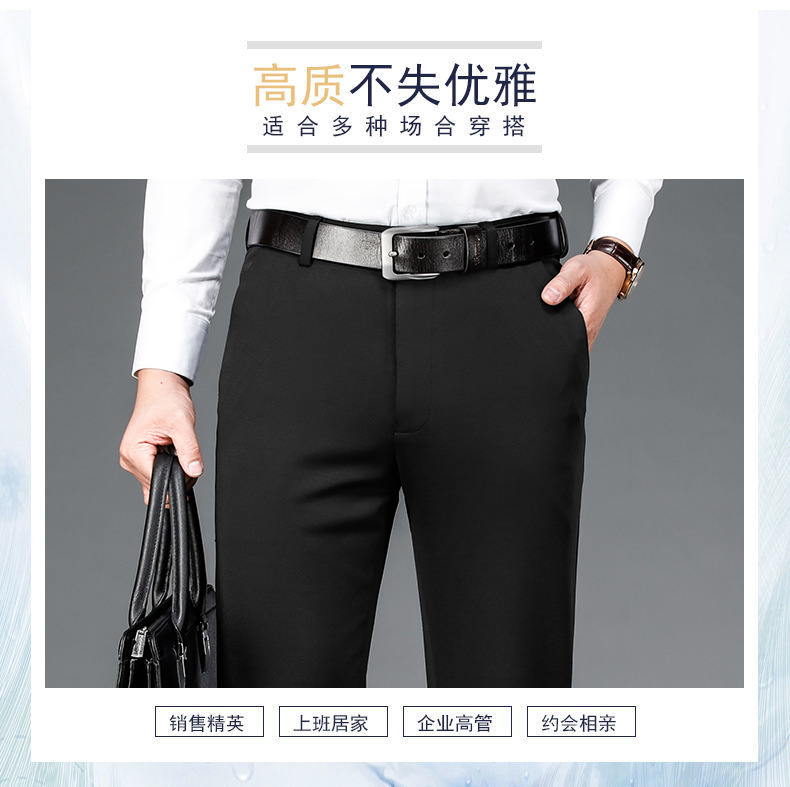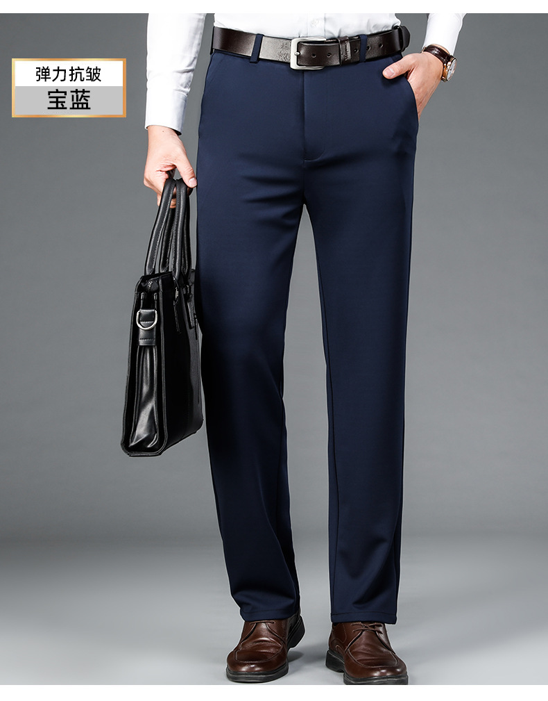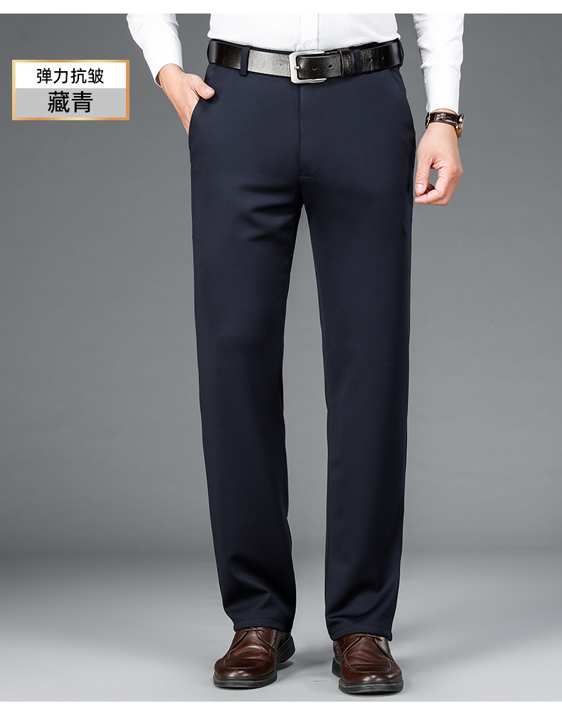 가을과 겨울 두꺼운 캐주얼 바지 남성 바지 비즈니스 스트레이트 모든 매치 단색 탄성 허리 비 다림질 탄성 주름 방지 바지스토어 가기