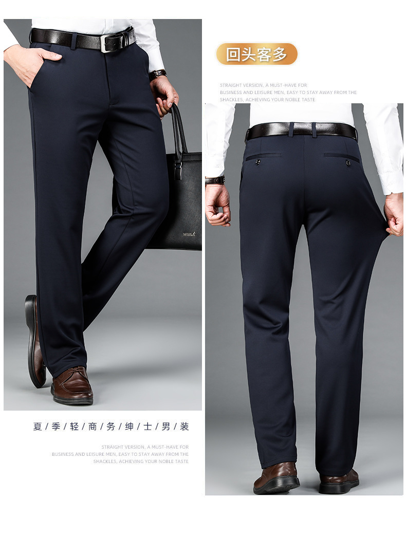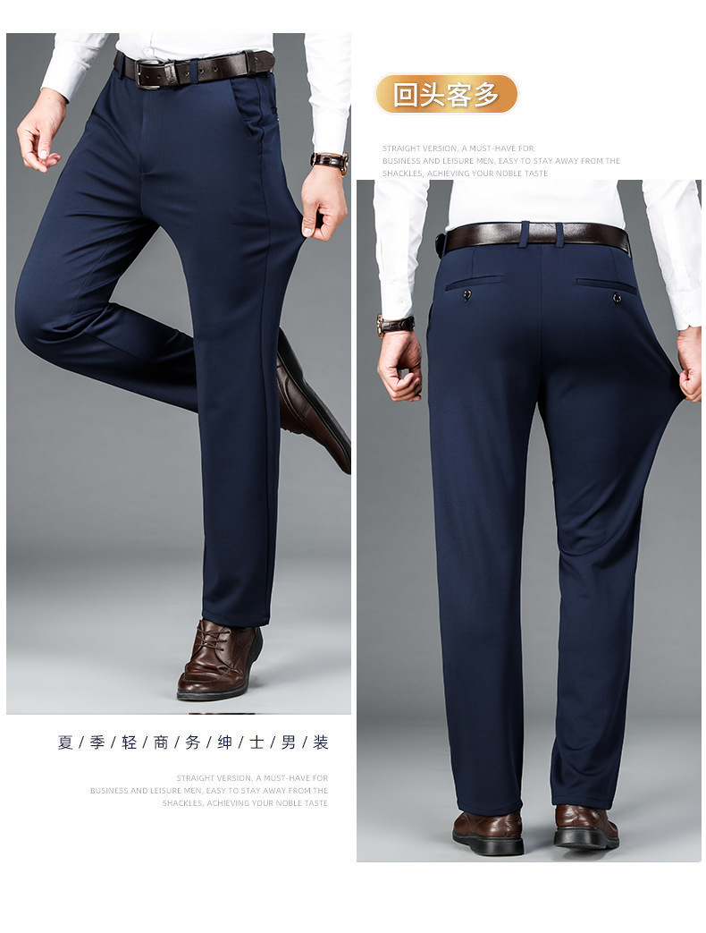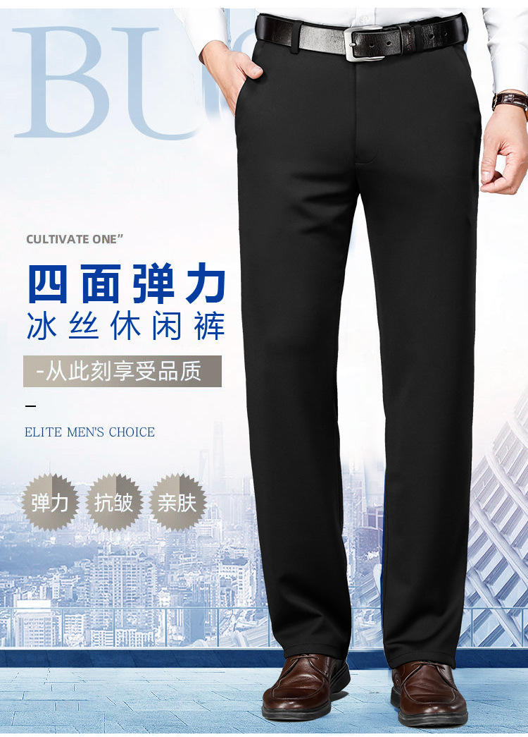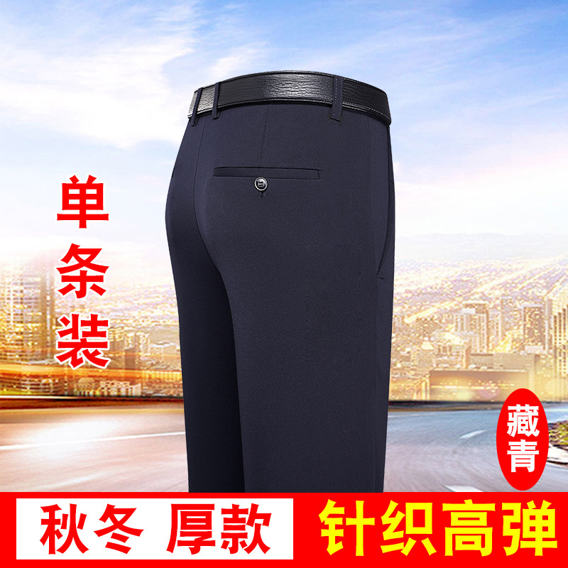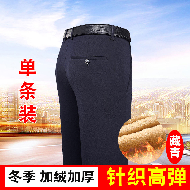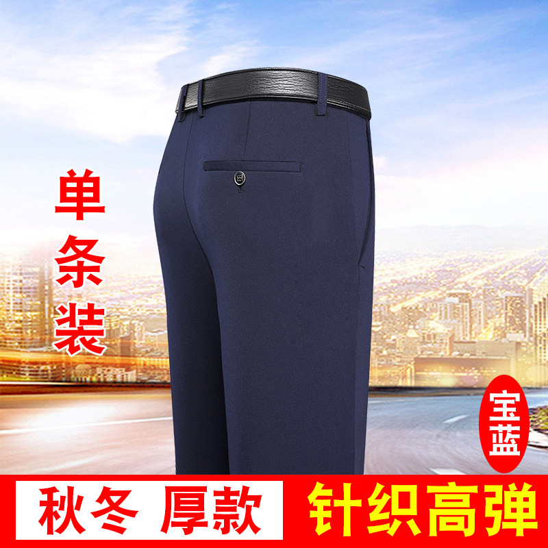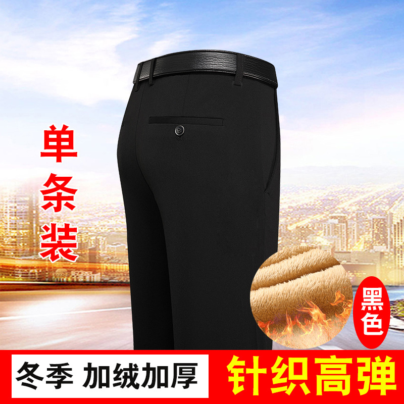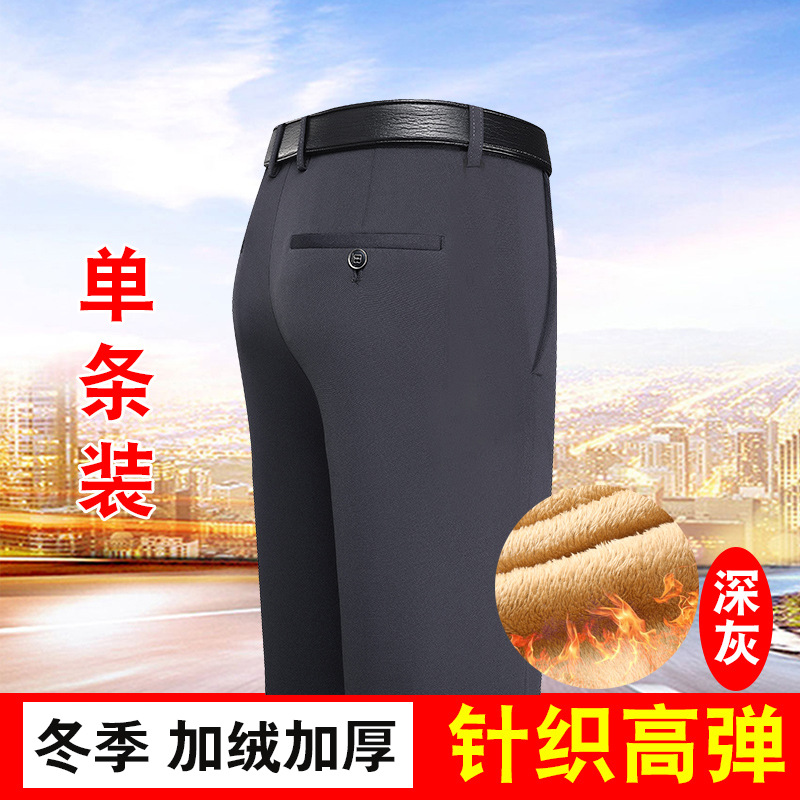 가을과 겨울 두꺼운 캐주얼 바지 남성 바지 비즈니스 스트레이트 모든 매치 단색 탄성 허리 비 다림질 탄성 주름 방지 바지스토어 가기