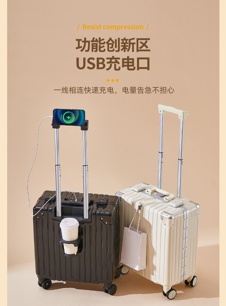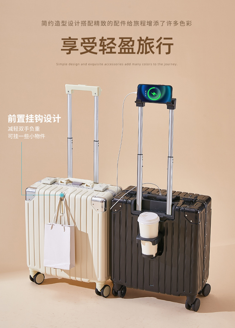 다기능 18 인치 알루미늄 프레임 수하물 케이스 여성용 20 여행 가방 유니버설 휠 타이로드 탑승 케이스 암호 상자 남성용 수하물