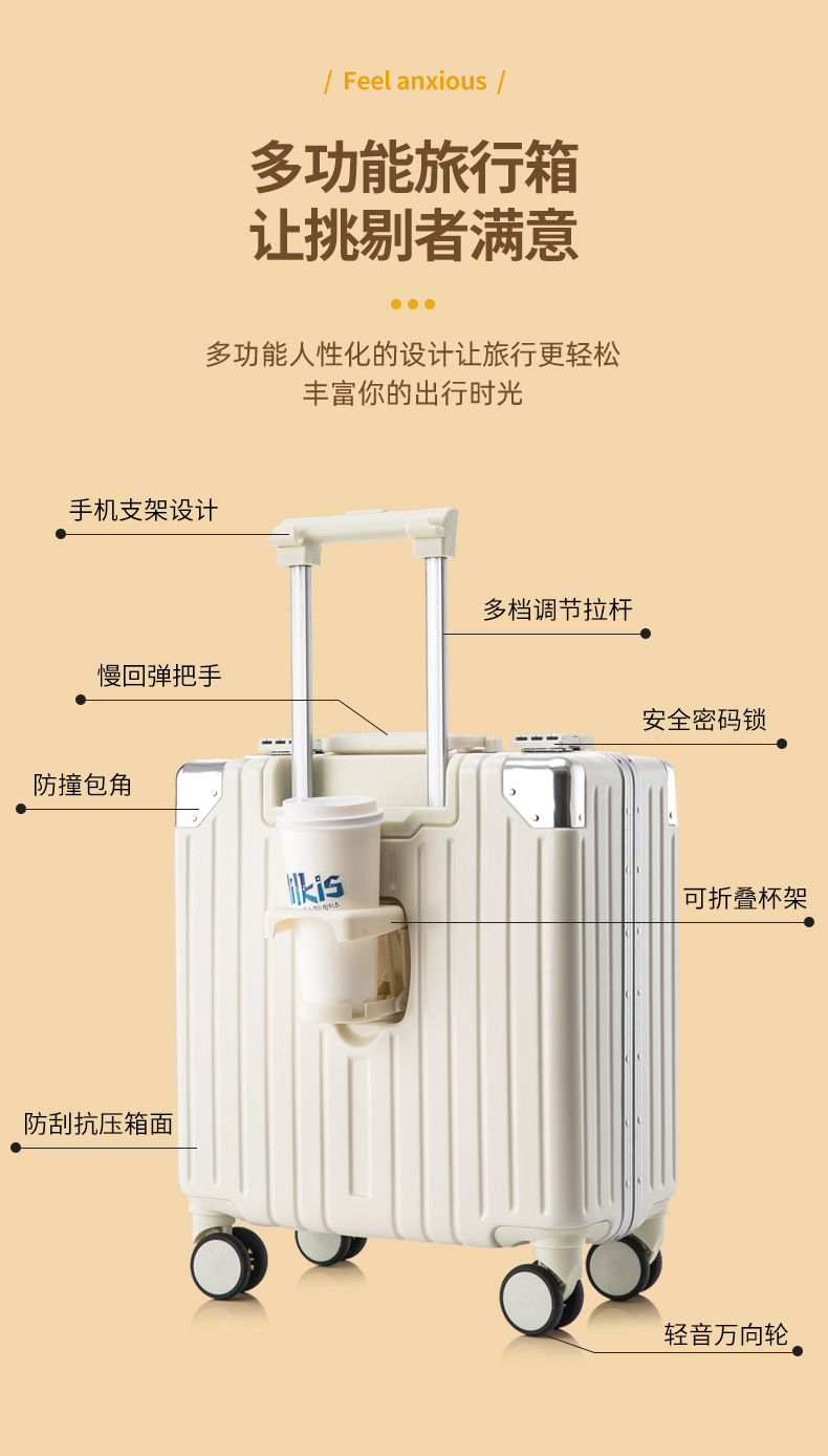 다기능 18 인치 알루미늄 프레임 수하물 케이스 여성용 20 여행 가방 유니버설 휠 타이로드 탑승 케이스 암호 상자 남성용 수하물스토어 가기